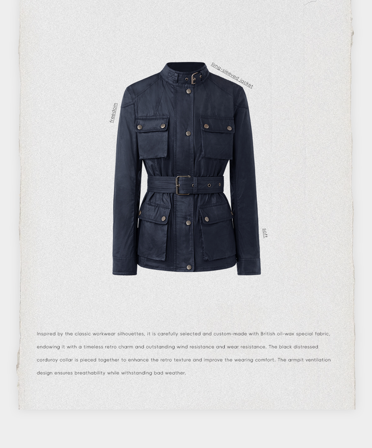 ROMI STUDIO“复古英伦”油蜡混纺做旧防风夹克外套 RWCAWY4691