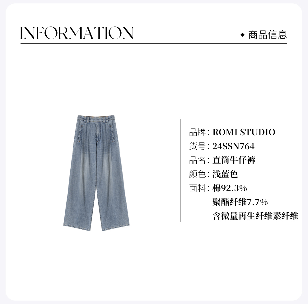 ROMI STUDIO“冰感牛仔”高支竹节纤维轻薄垂顺直筒牛仔裤 24SSN764