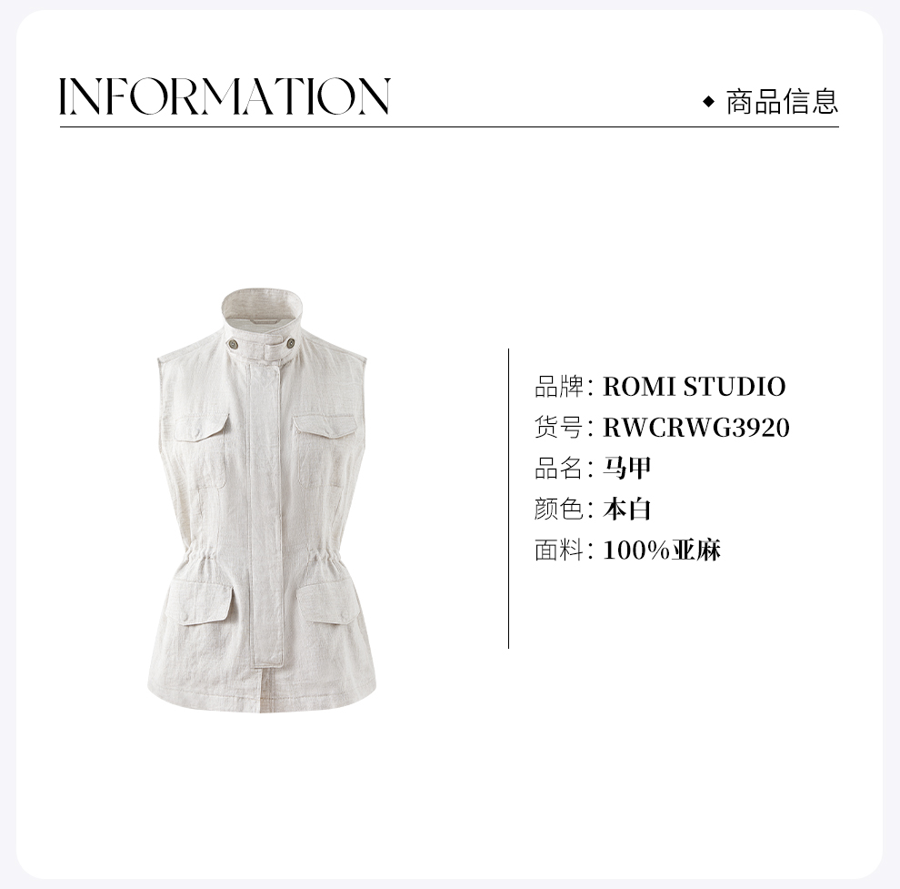 ROMI STUDIO“质感亚麻”100%亚麻抽绳收腰宽松立领马甲 RWCRWG3920