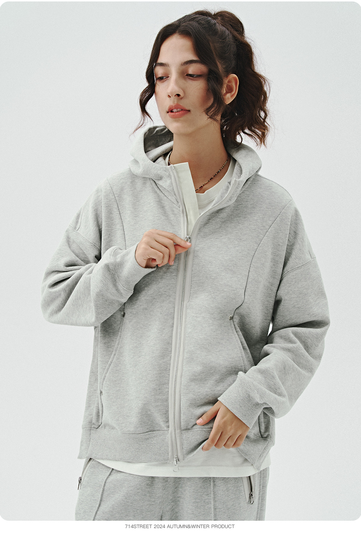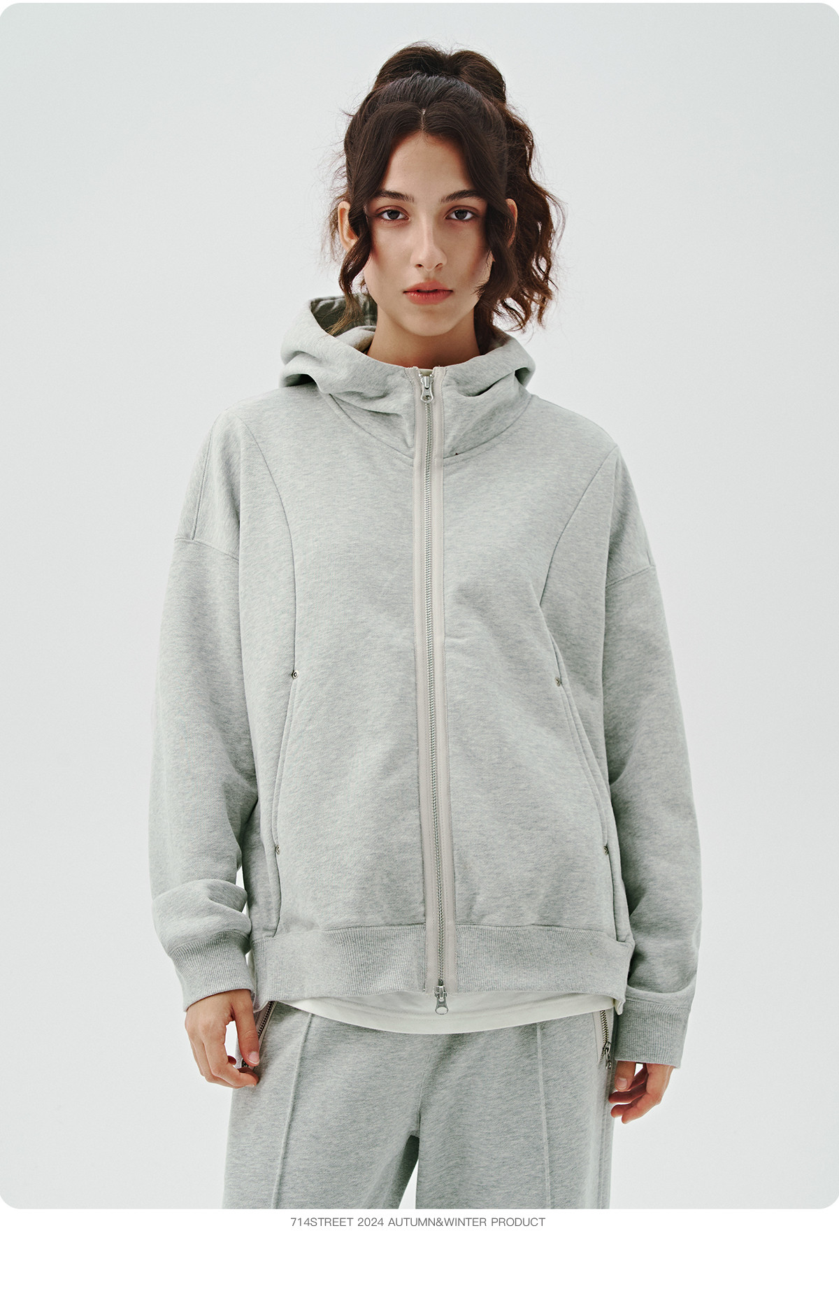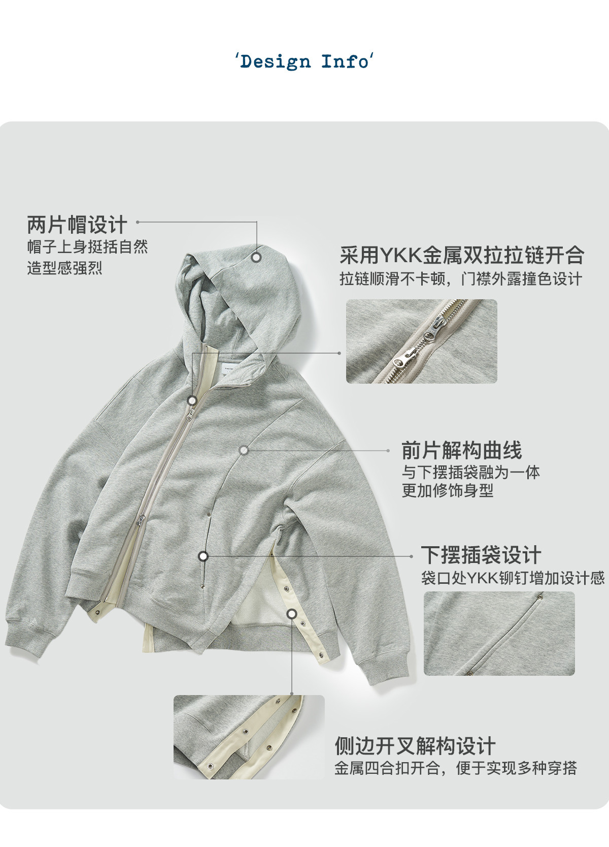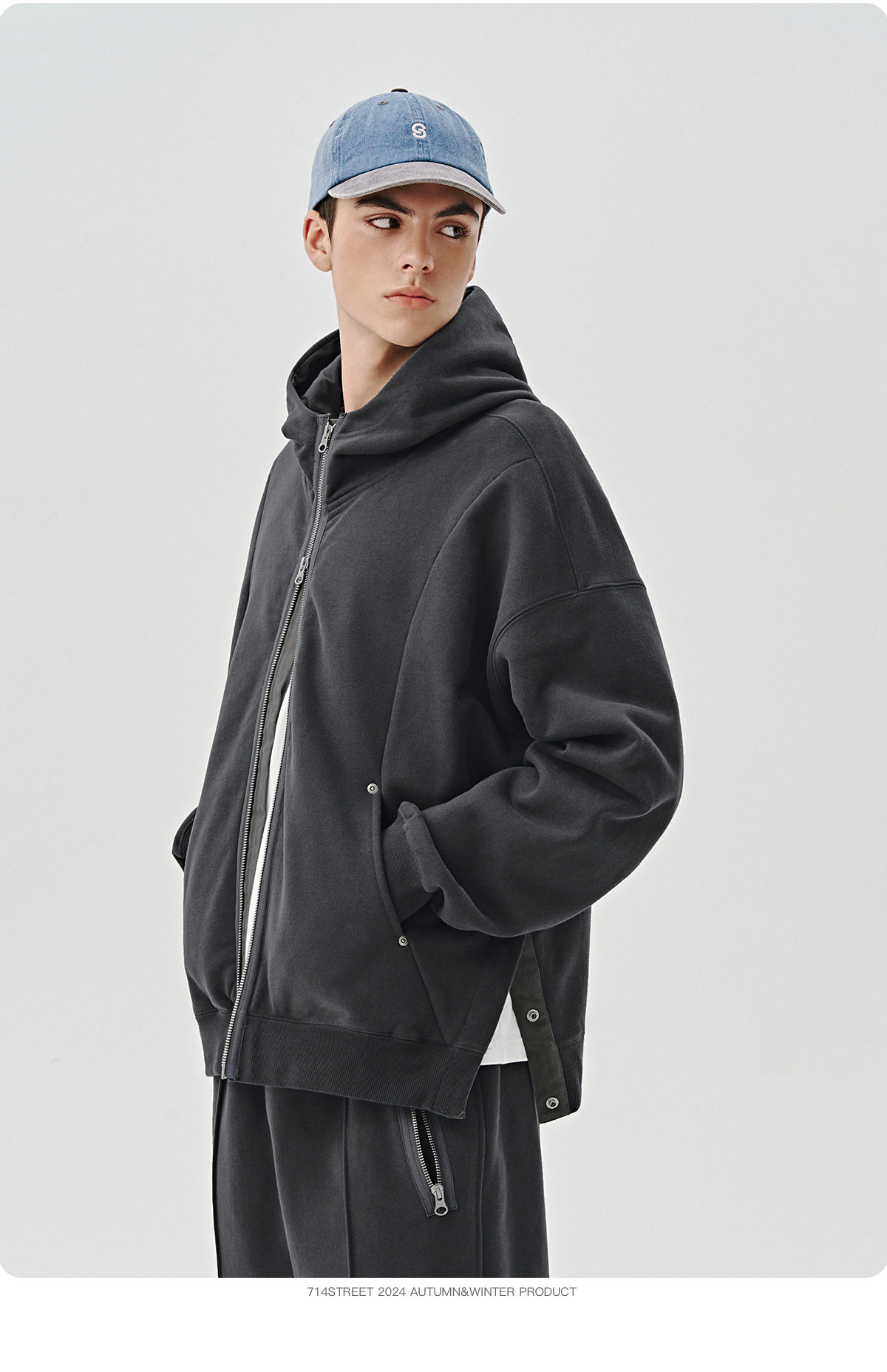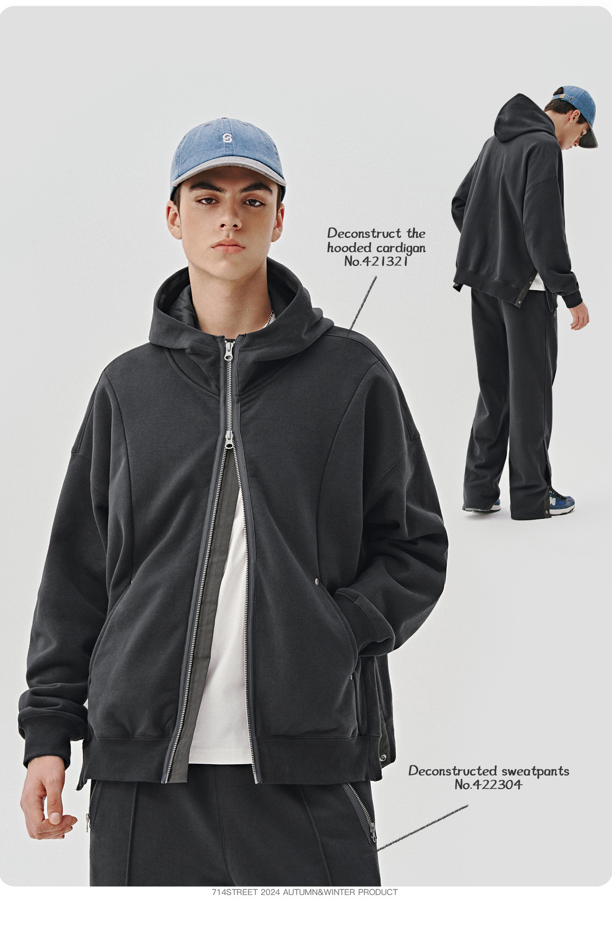 714street秋冬新款重磅500g解构连帽卫衣开衫情侣宽松卫衣外套男