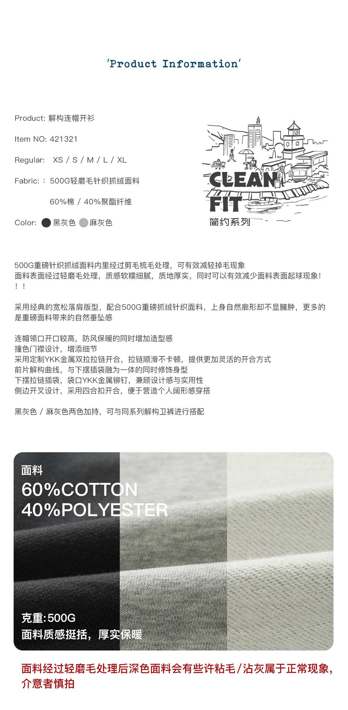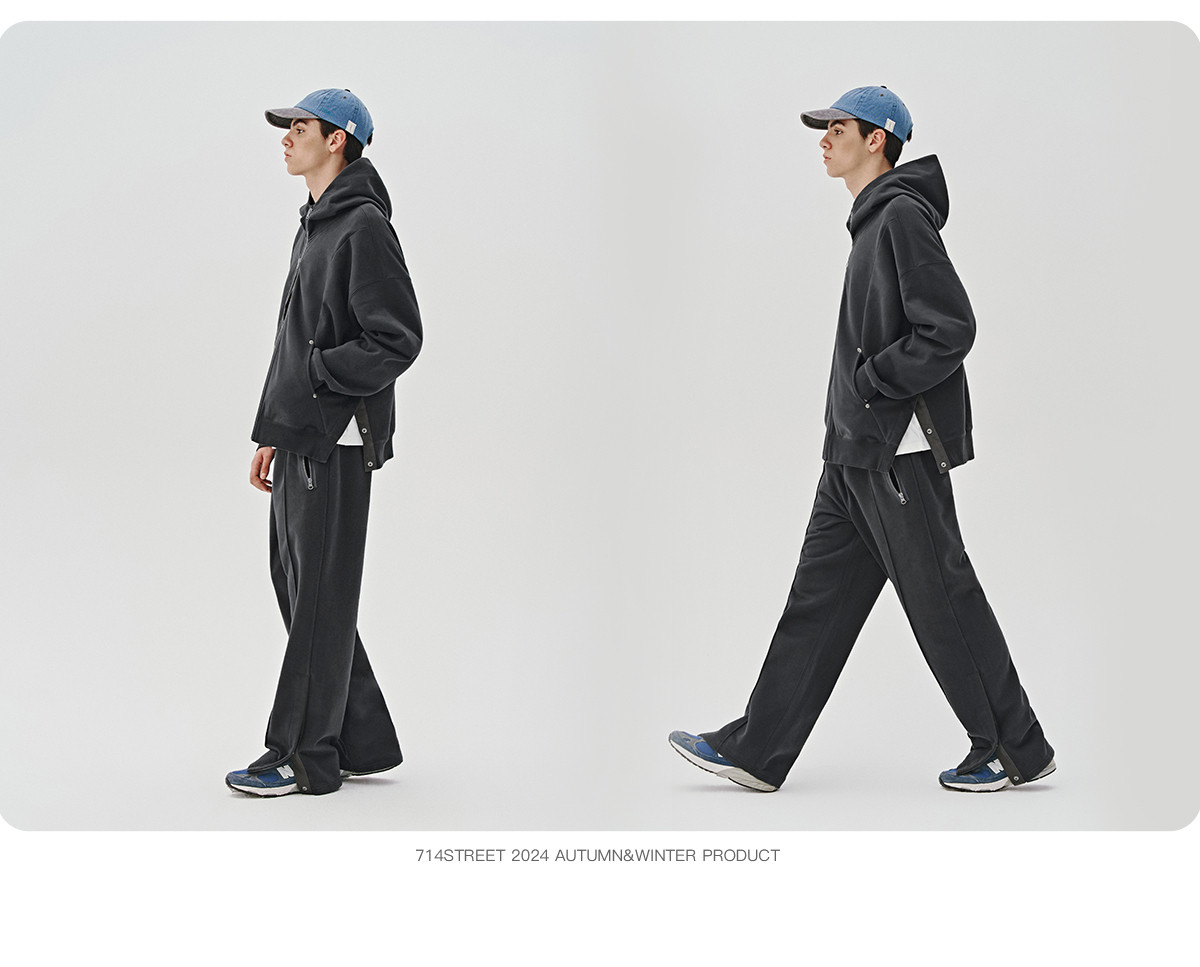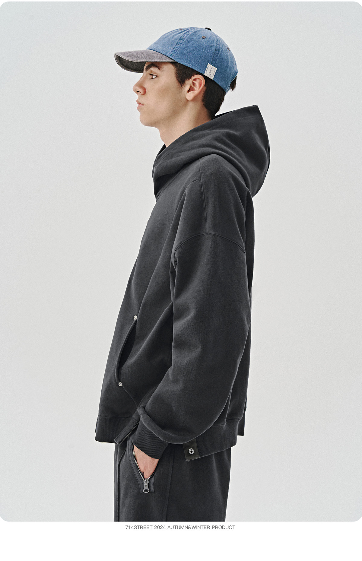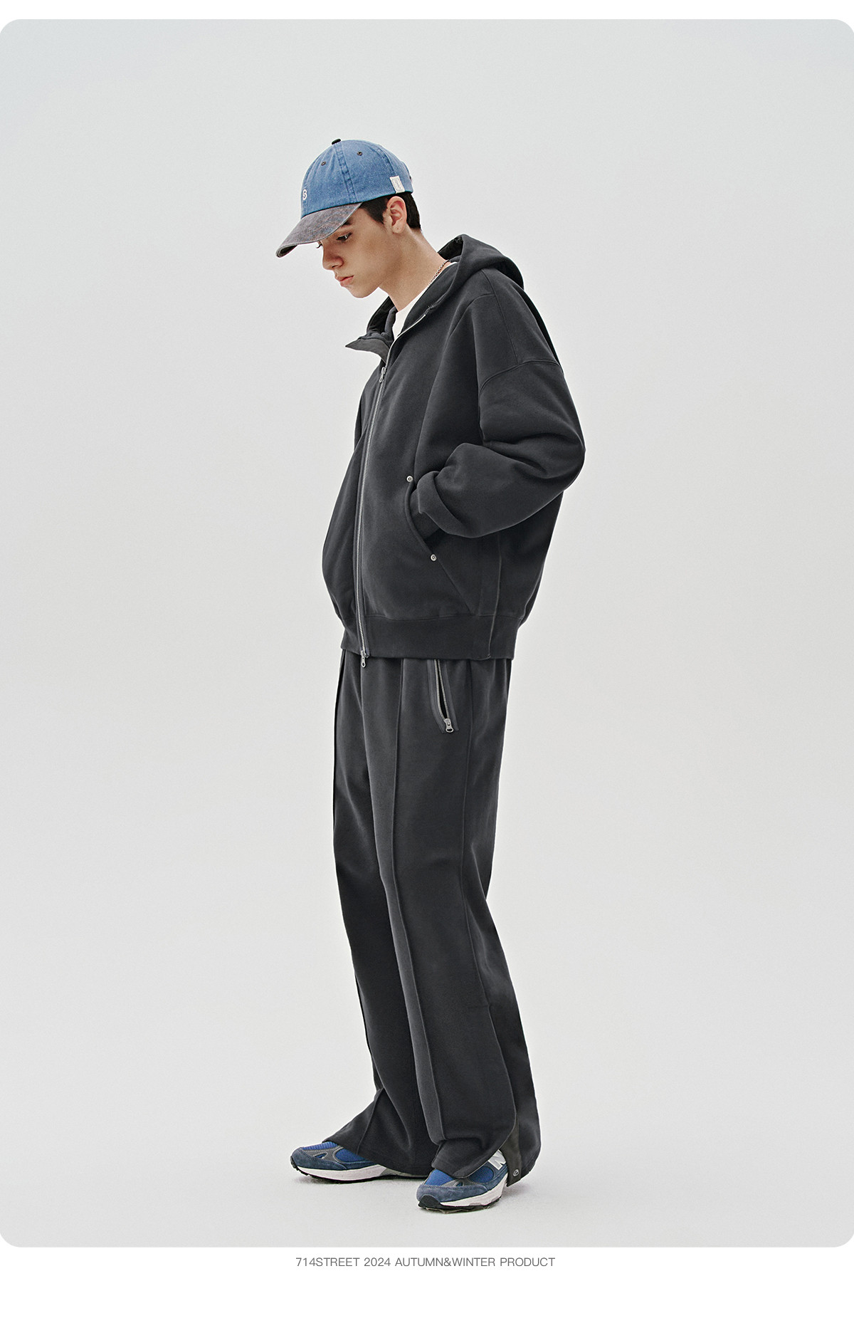 714street秋冬新款重磅500g解构连帽卫衣开衫情侣宽松卫衣外套男