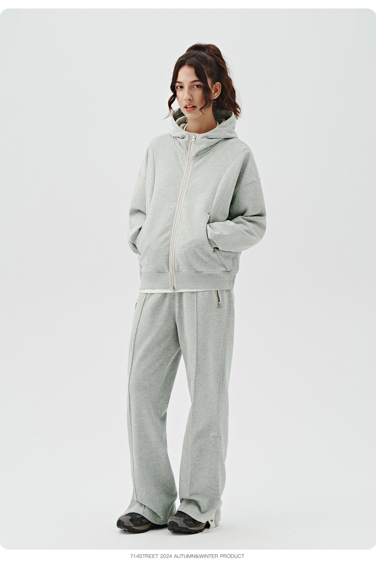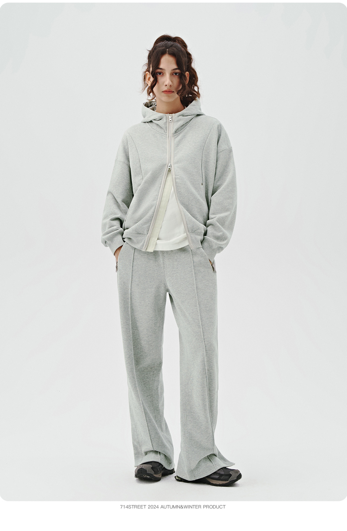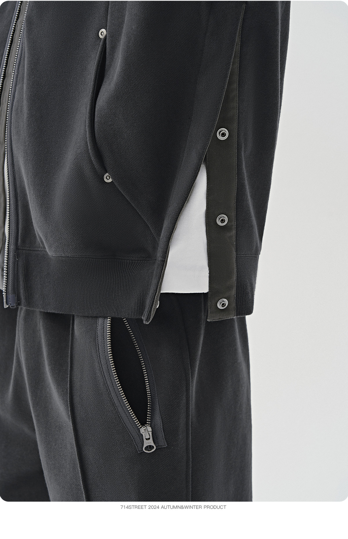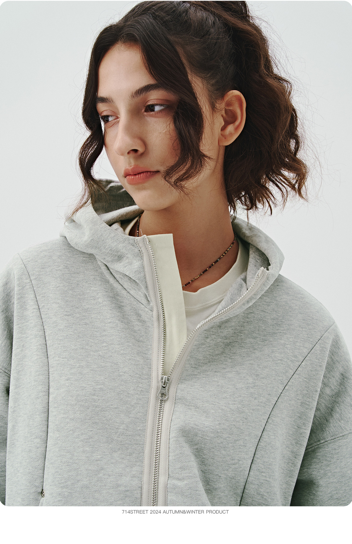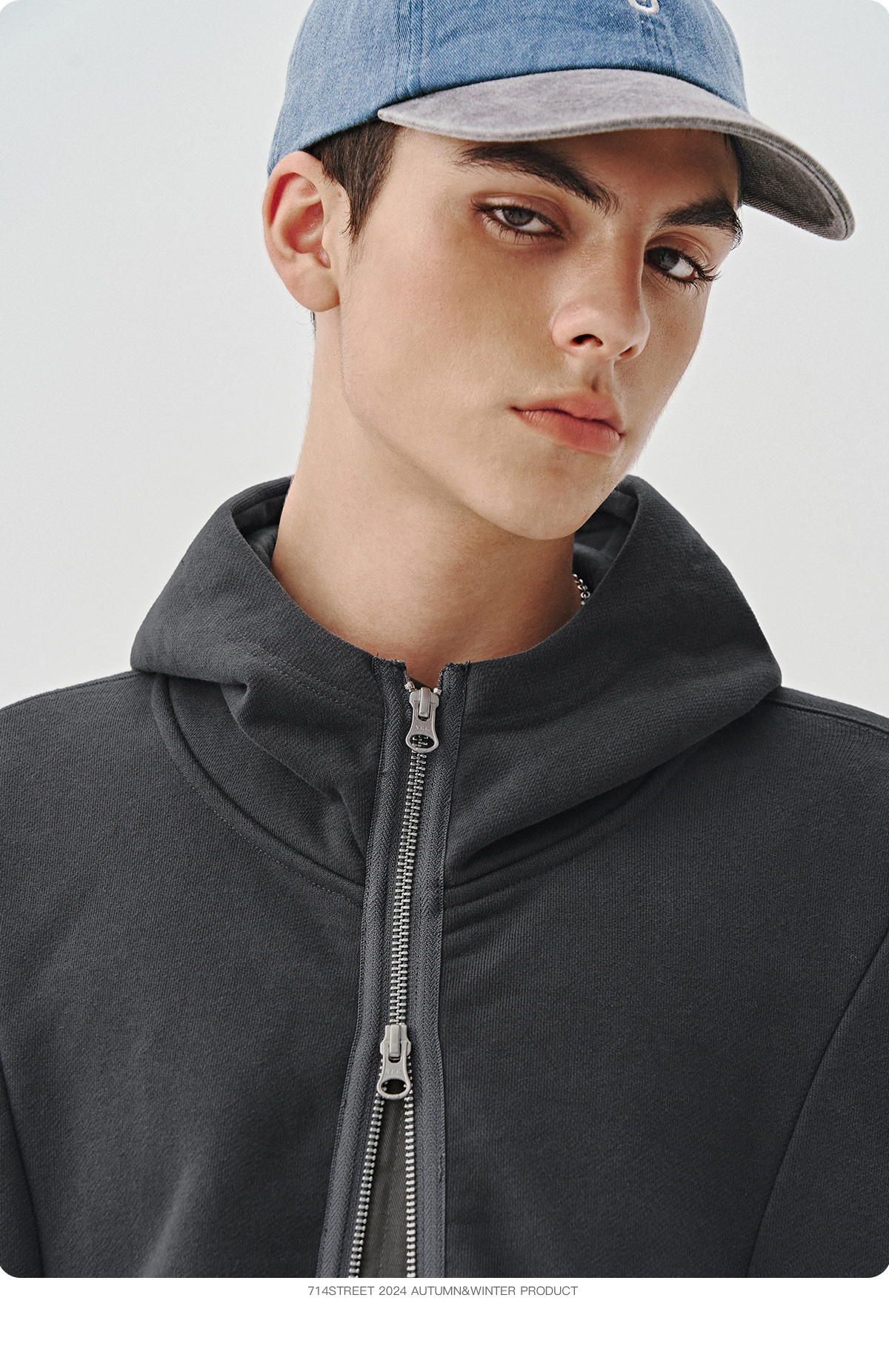 714street秋冬新款重磅500g解构连帽卫衣开衫情侣宽松卫衣外套男