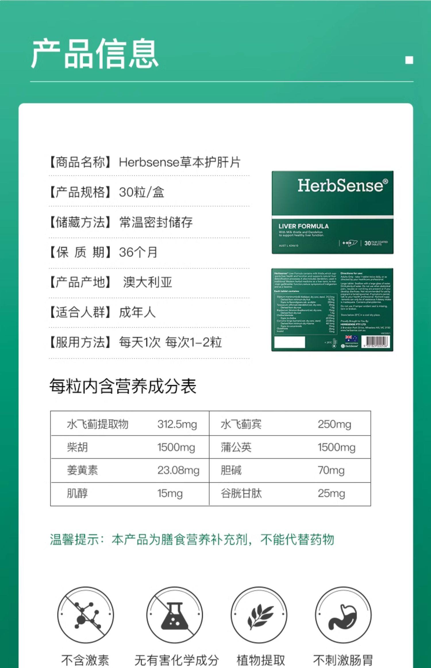 Herbsense贺柏圣澳洲进口奶蓟草护肝正品熬夜解酒精旰水飞蓟养肝