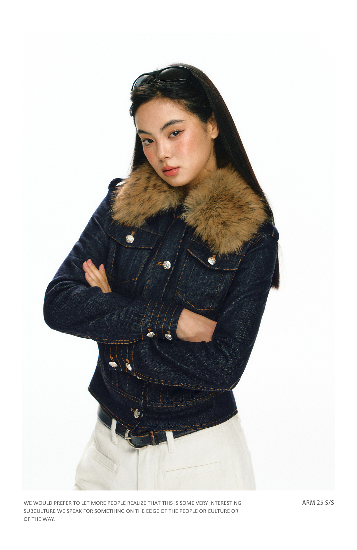Ariseism 美式复古设计感可拆卸毛领摇粒绒内里外套女秋冬新款