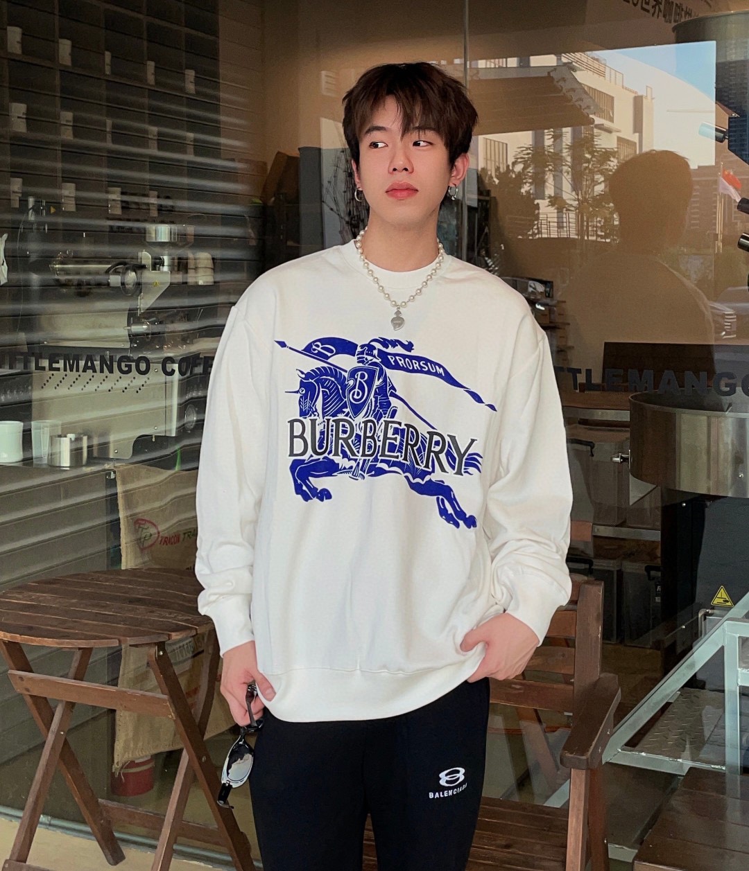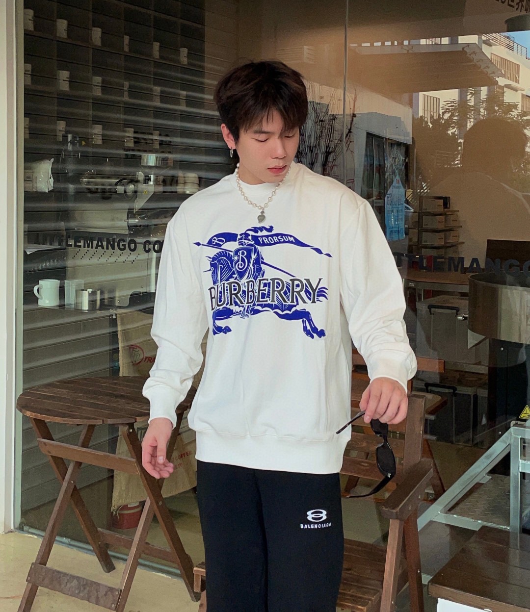 BUR 巴*莉 最新植绒战马卫衣,面料采用精梳棉卫衣面料,采用立体植绒工艺,战马最新大麦,上身效果宽松休闲,三标齐全 ,男女同款