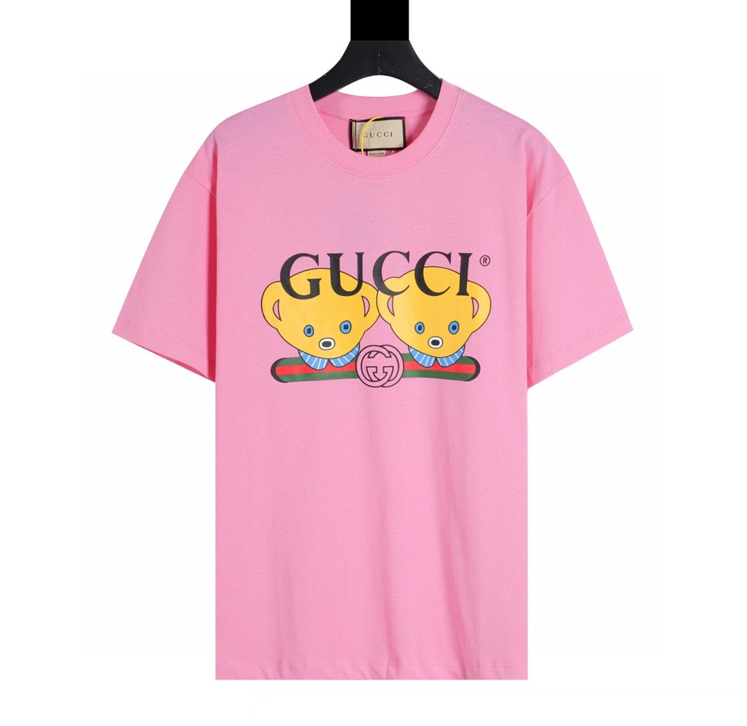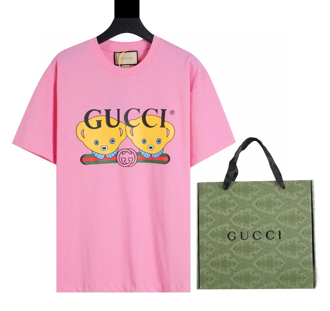 guc 2023新款 小熊头像印花短袖T恤 很多家都有的东 但想要出圈 必须用高质感说话!我不怕比较!关于这件的成品 我是相当的满意了 面料的纹理克重印花的手感清晰度 跟zp放在一块 根本分不出来!