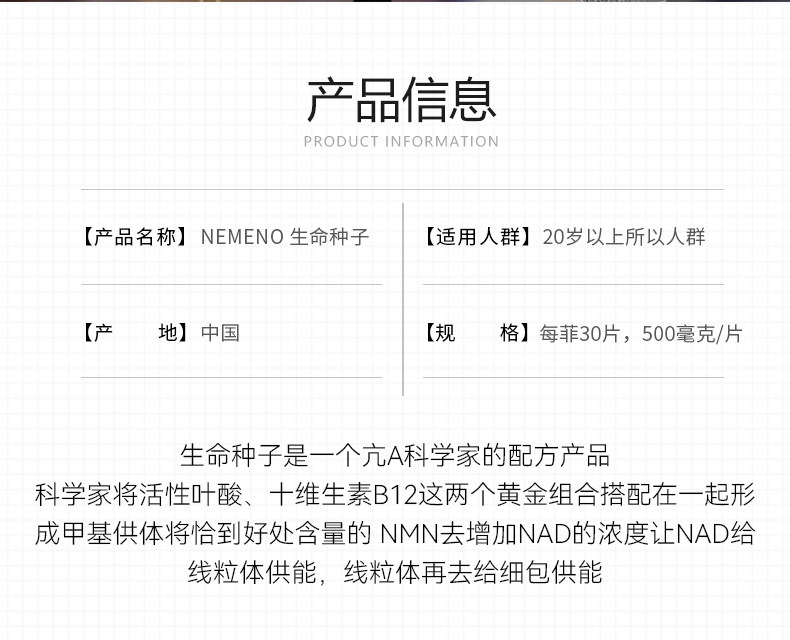 NEMENO逆美诺生命种子逆龄亢衰营养内服高端奢养美颜刮码发