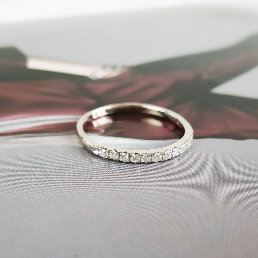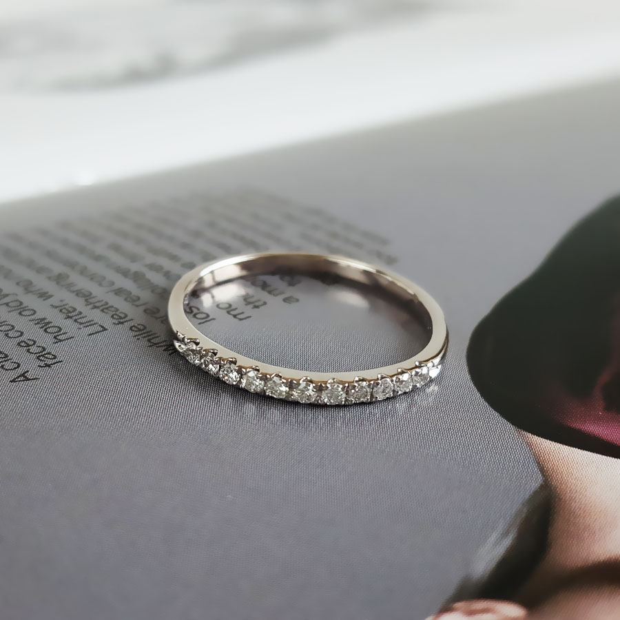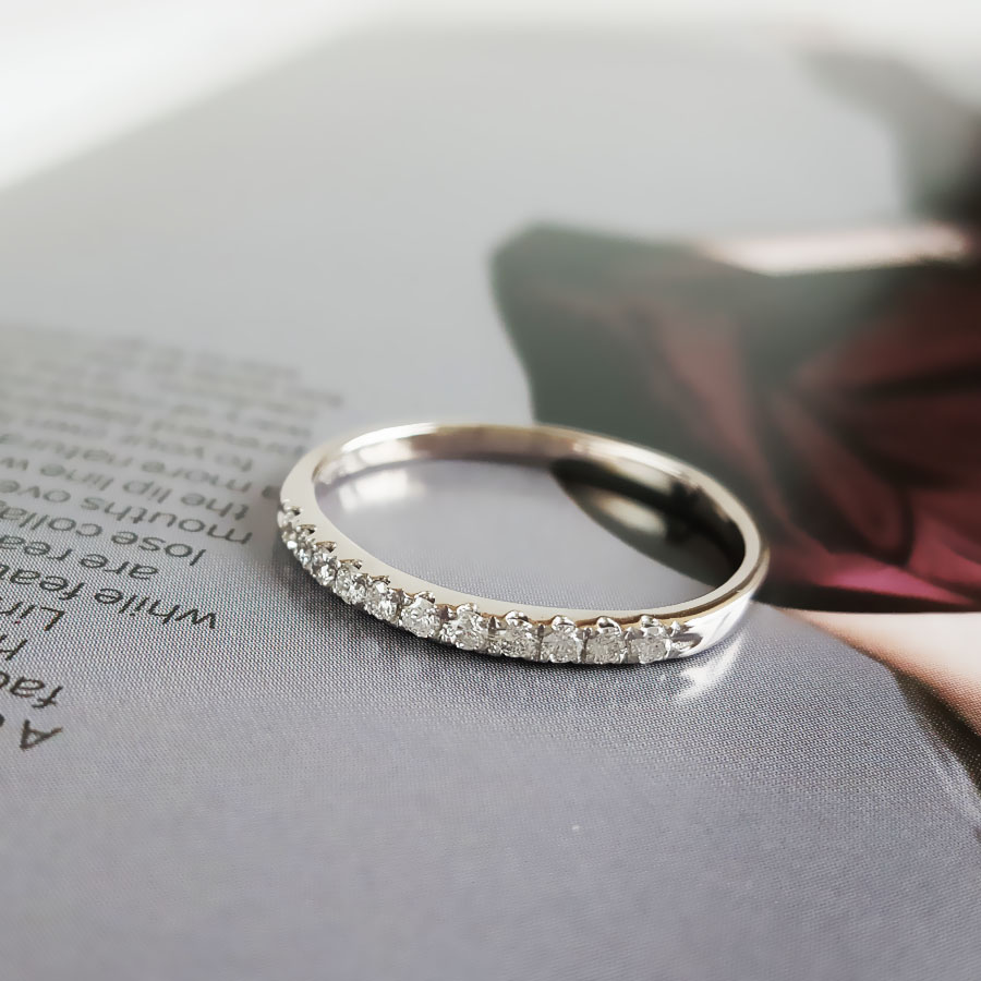 名称 | AU750白金简约时尚群镶款0.20克拉钻石戒指 |