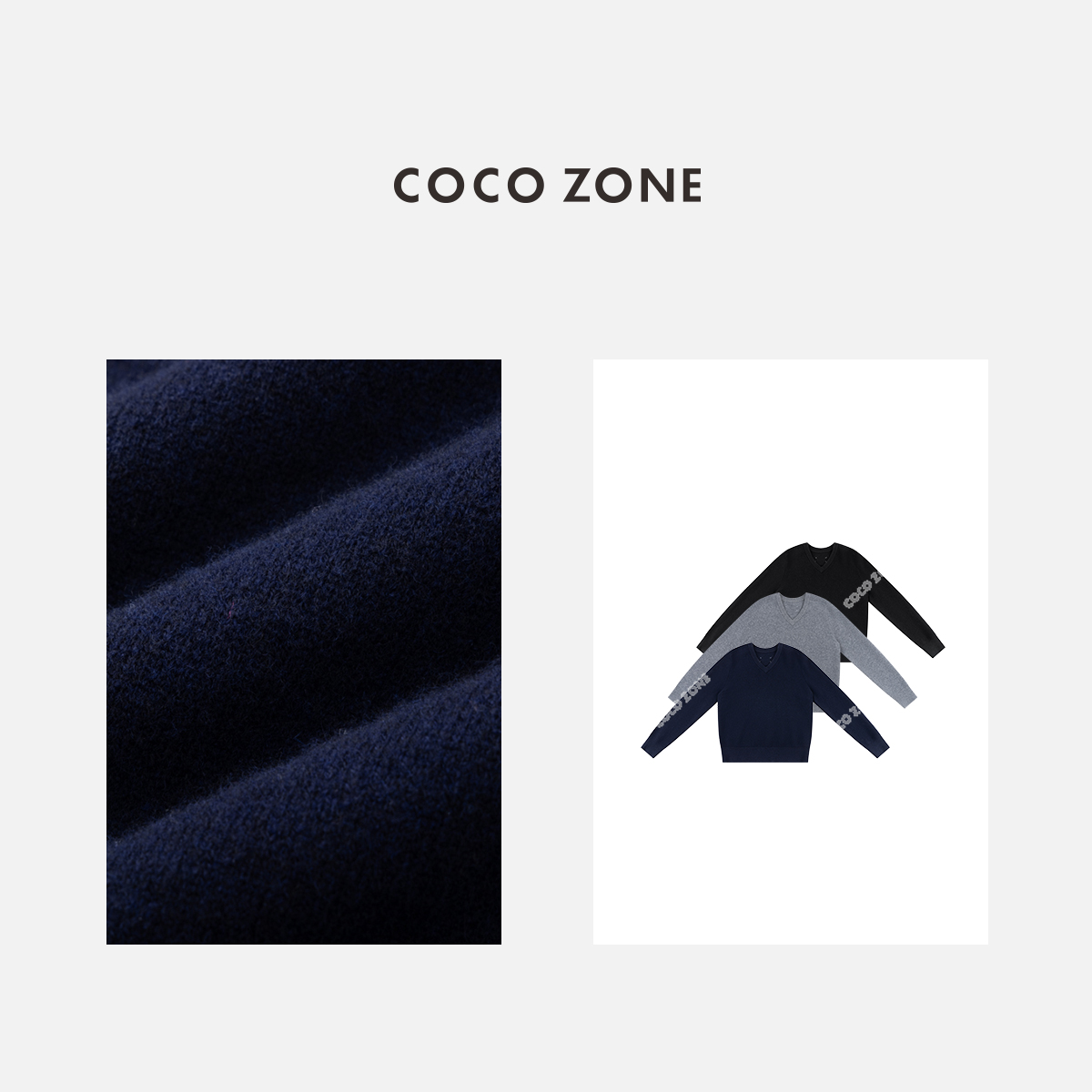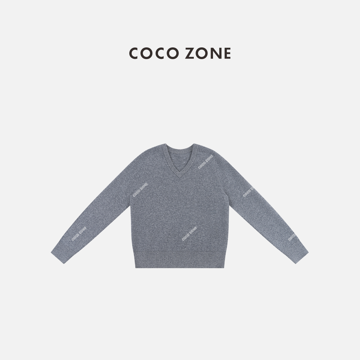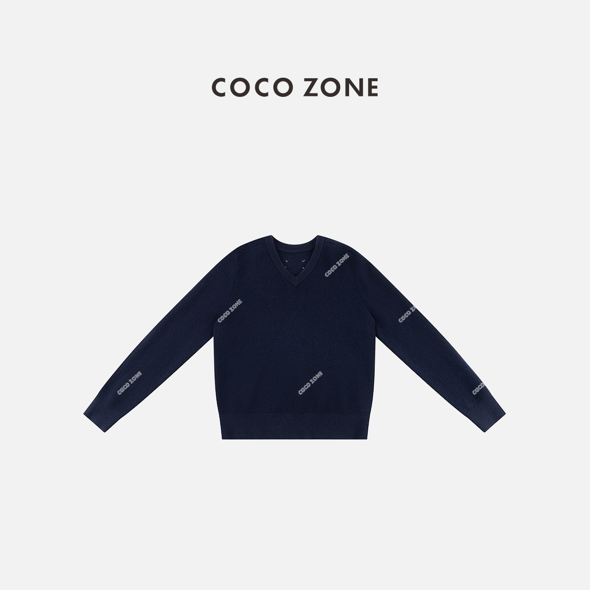 COCO ZONE 100绵羊毛V领套头上锈针织打底衫CC1D2385