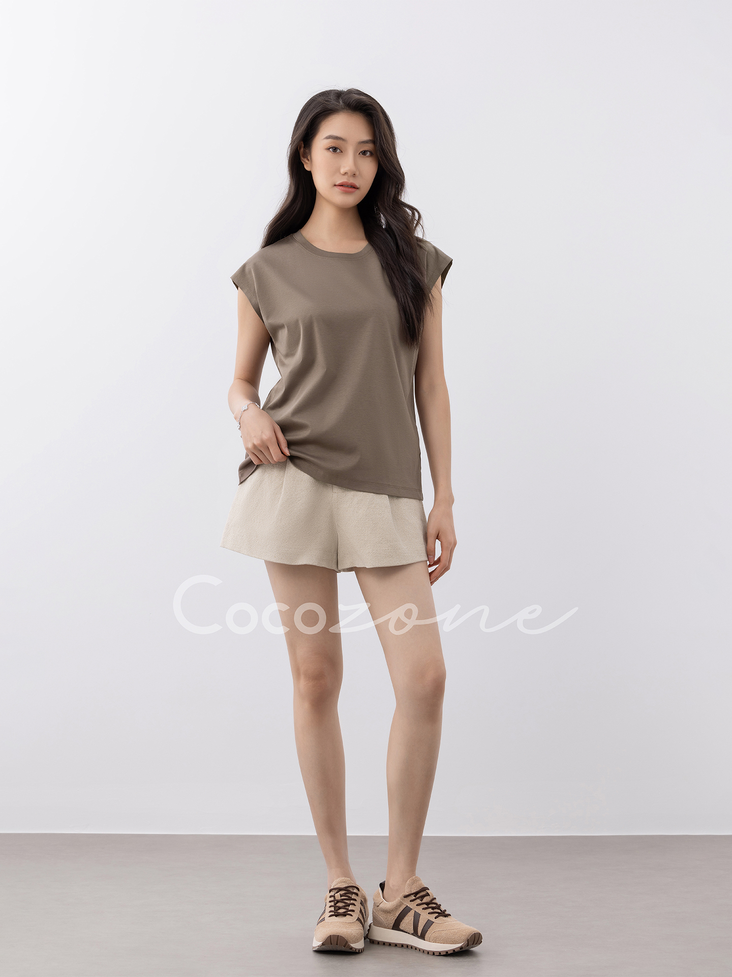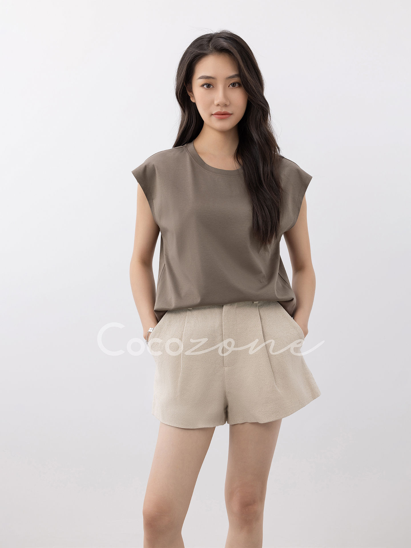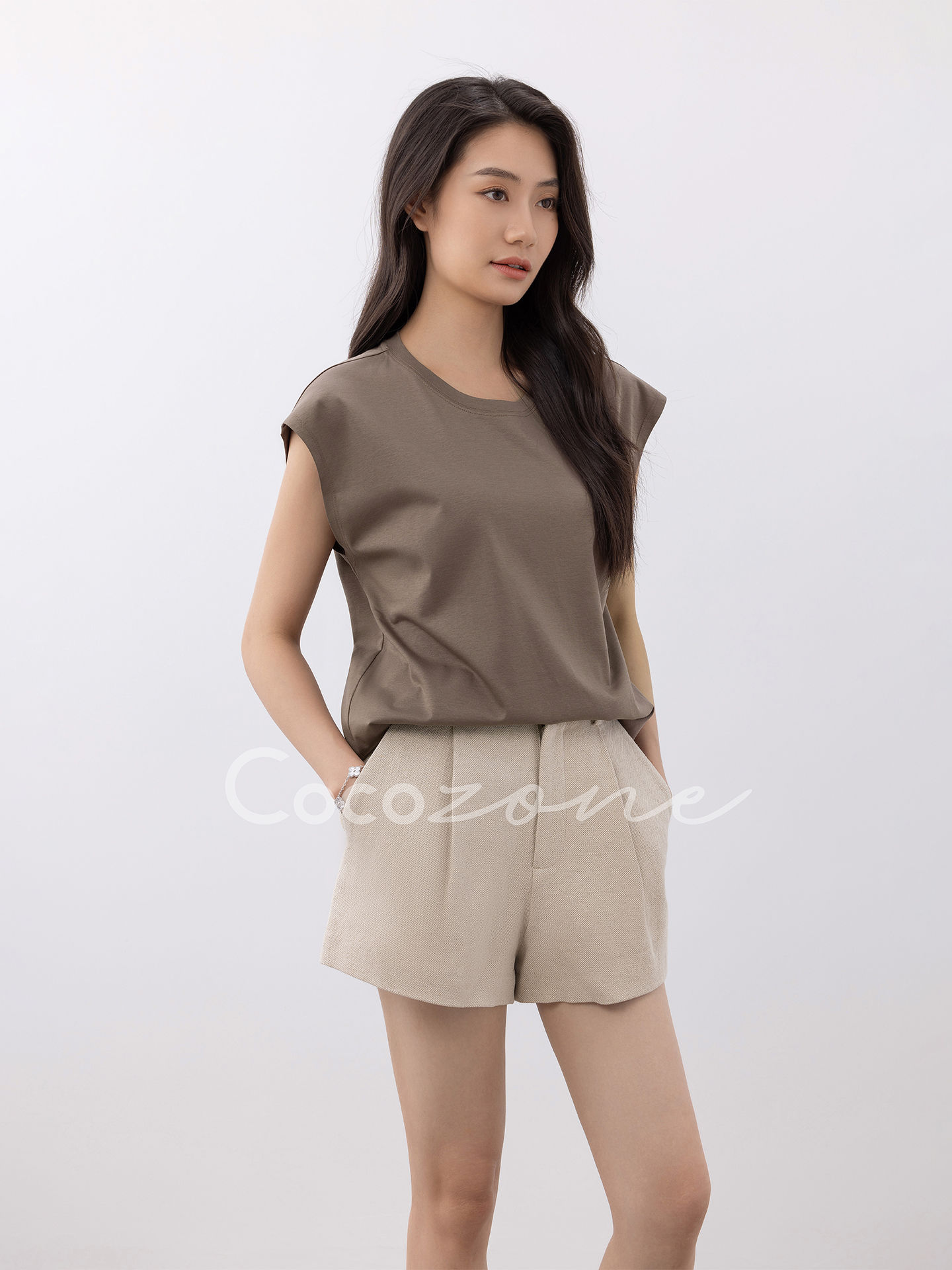 COCO ZONE 刘一一【棉麻混纺】纯色肌理感简约显瘦短裤CD1A1114