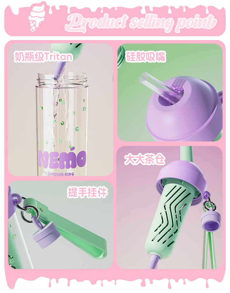 炊大皇甜筒吸管杯650ml(颜色备注)