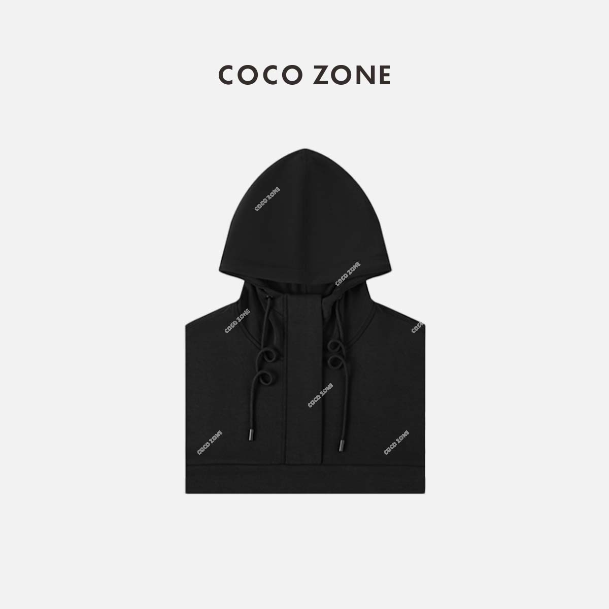 COCO ZONE 新款时尚黑色系绳休闲连帽卫衣 23C29136