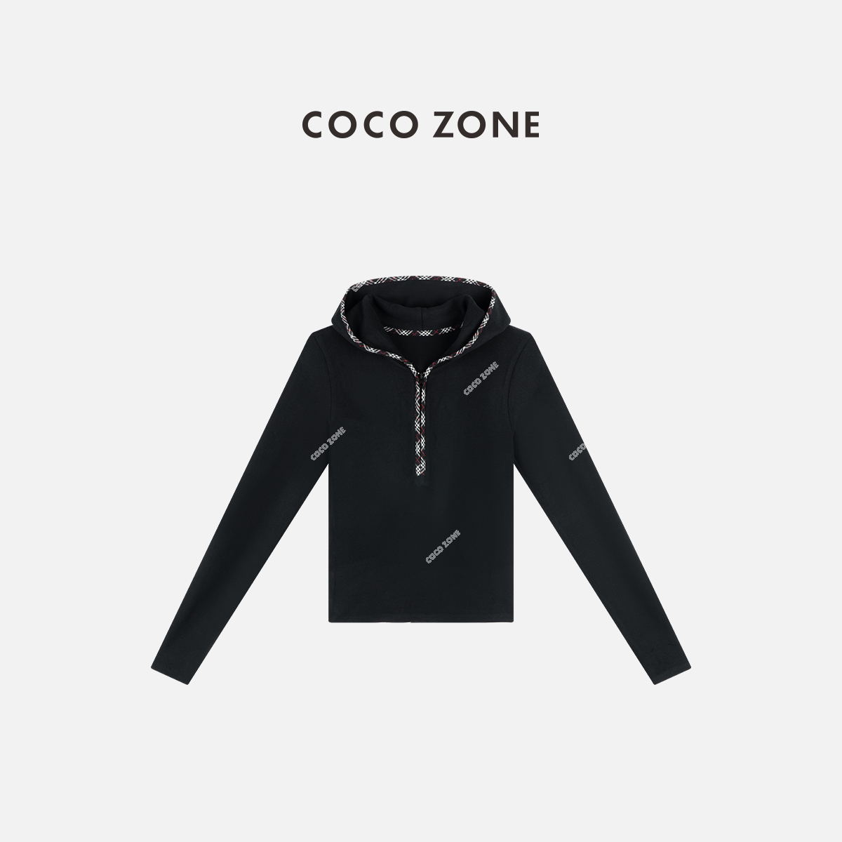 COCO ZONE 设计感撞色V领长袖T恤时尚休闲上衣CC2C1896