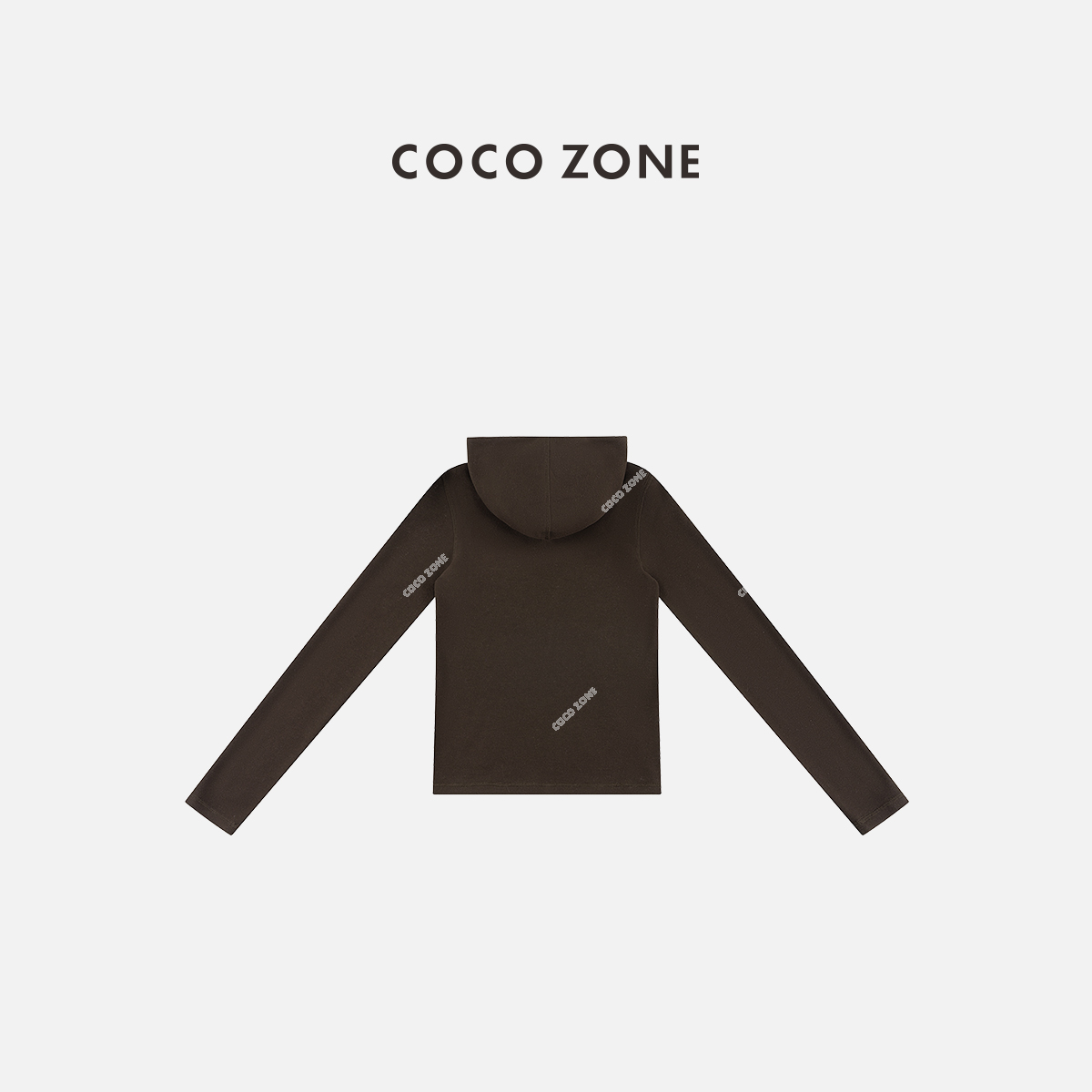 COCO ZONE 冬季设计感三粒扣双面绒连帽T恤CC2D3143