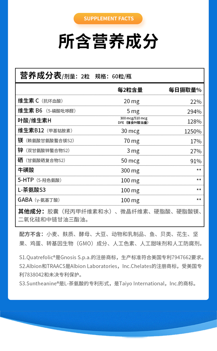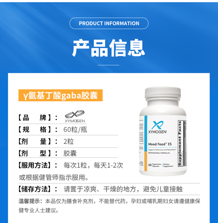 【效期至27年5月】γ氨基丁酸gaba胶囊 XYMOGEN Mood Food ES 60粒/瓶