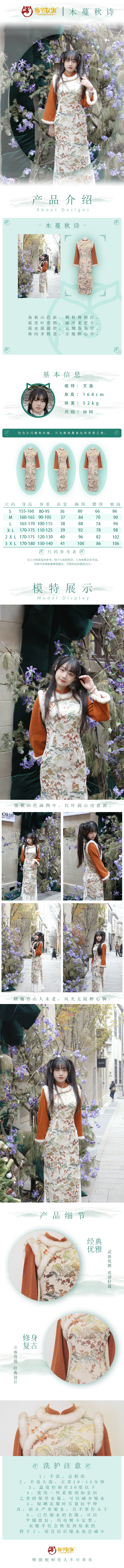【木蔓秋诗】林深见鹿橙色拼接设计织锦冬款保暖旗袍