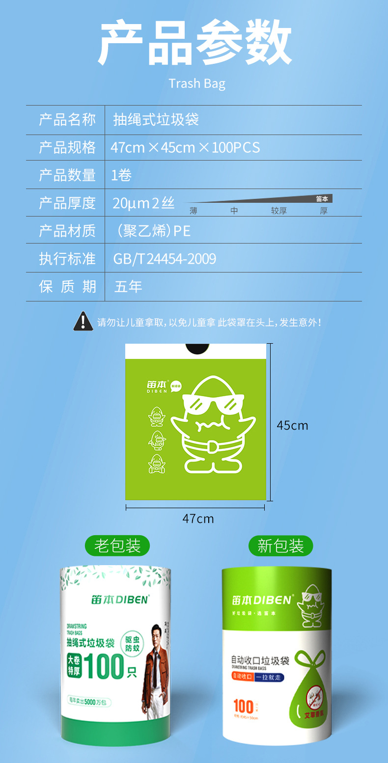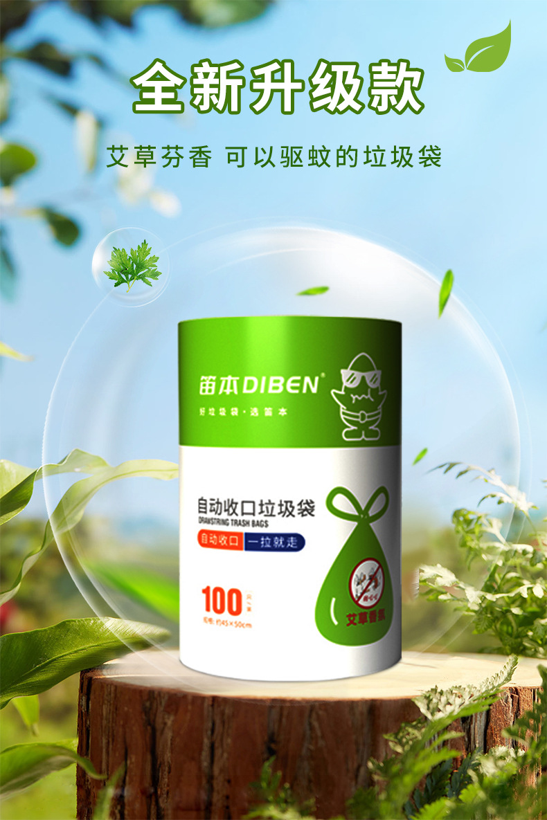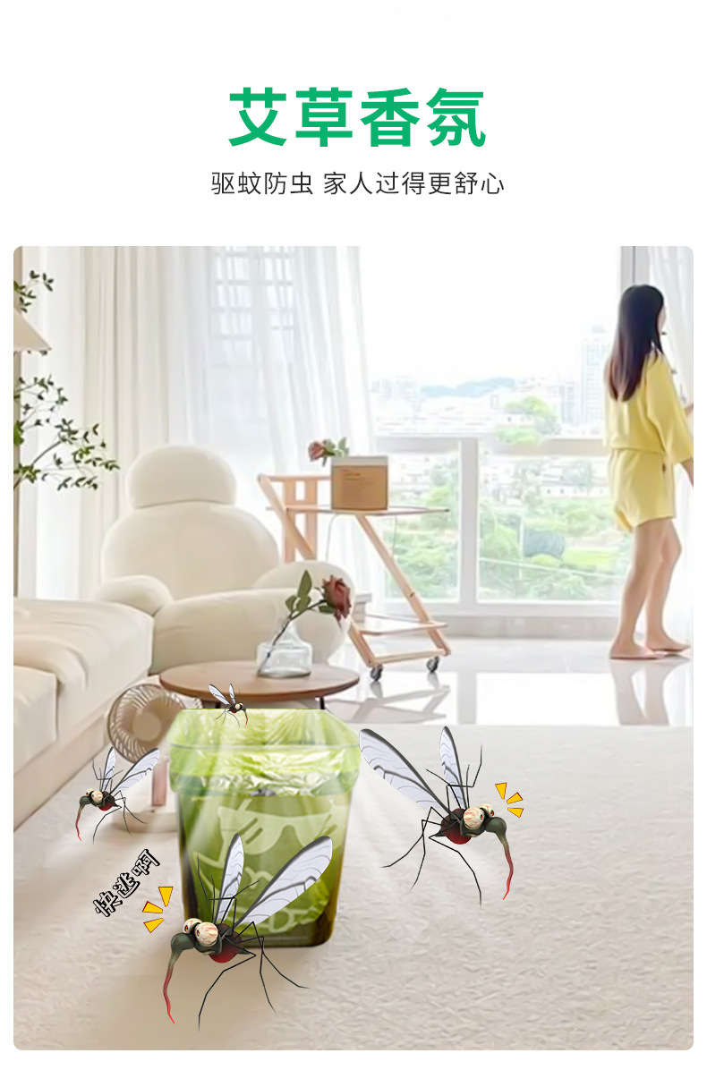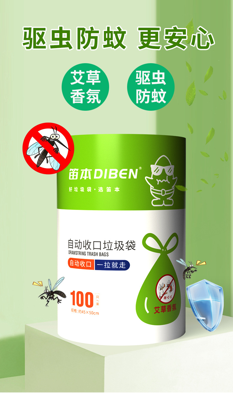 【拍1发100只!夏季必备!驱蚊防虫垃圾袋!】艾草加持!新品艾草驱蚊驱虫垃圾袋!告别臭气哄哄!100只大卷垃圾袋!家用艾草驱蚊抽绳式垃圾袋加厚厨房-LC17XP04