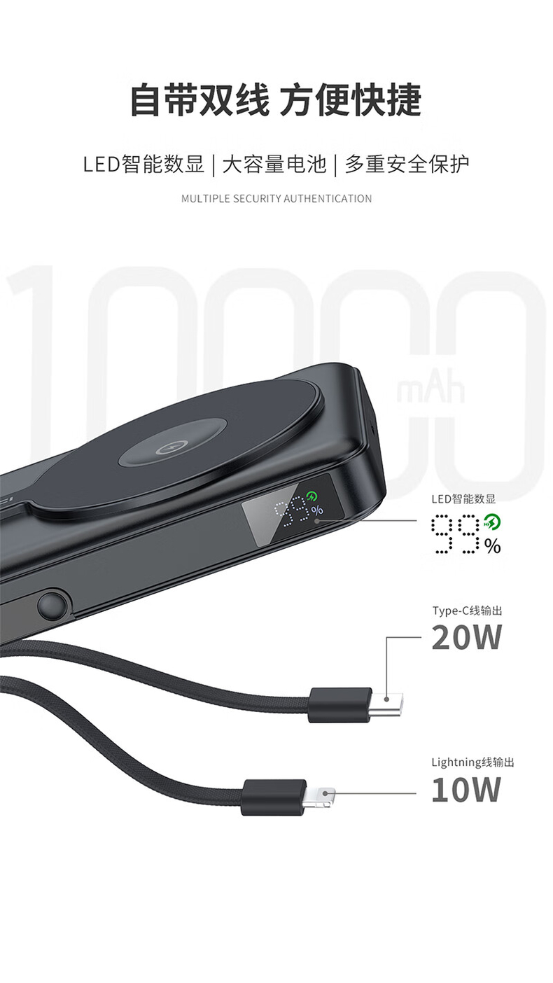 锐思RPB W27 10000mAh 银河快充移动电源 钛金色
