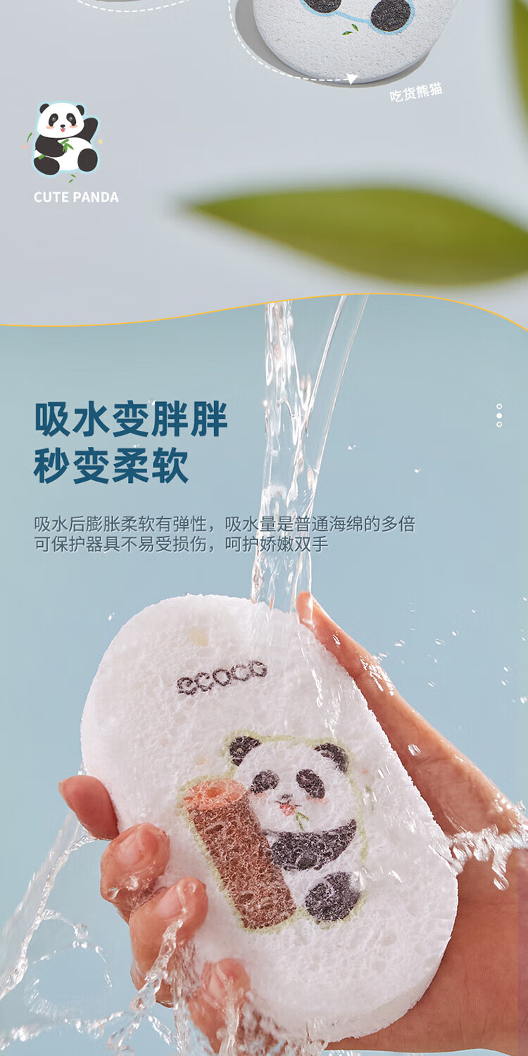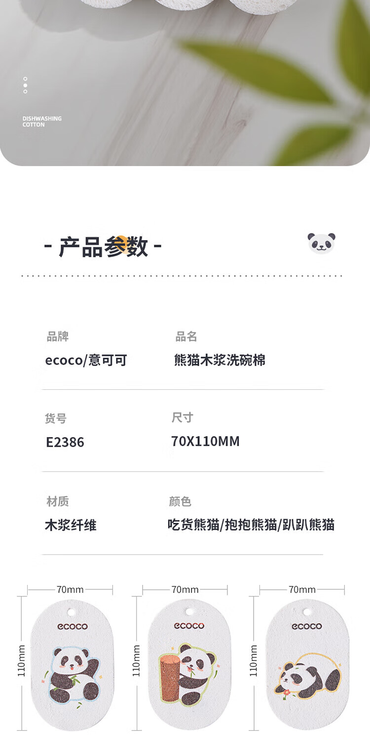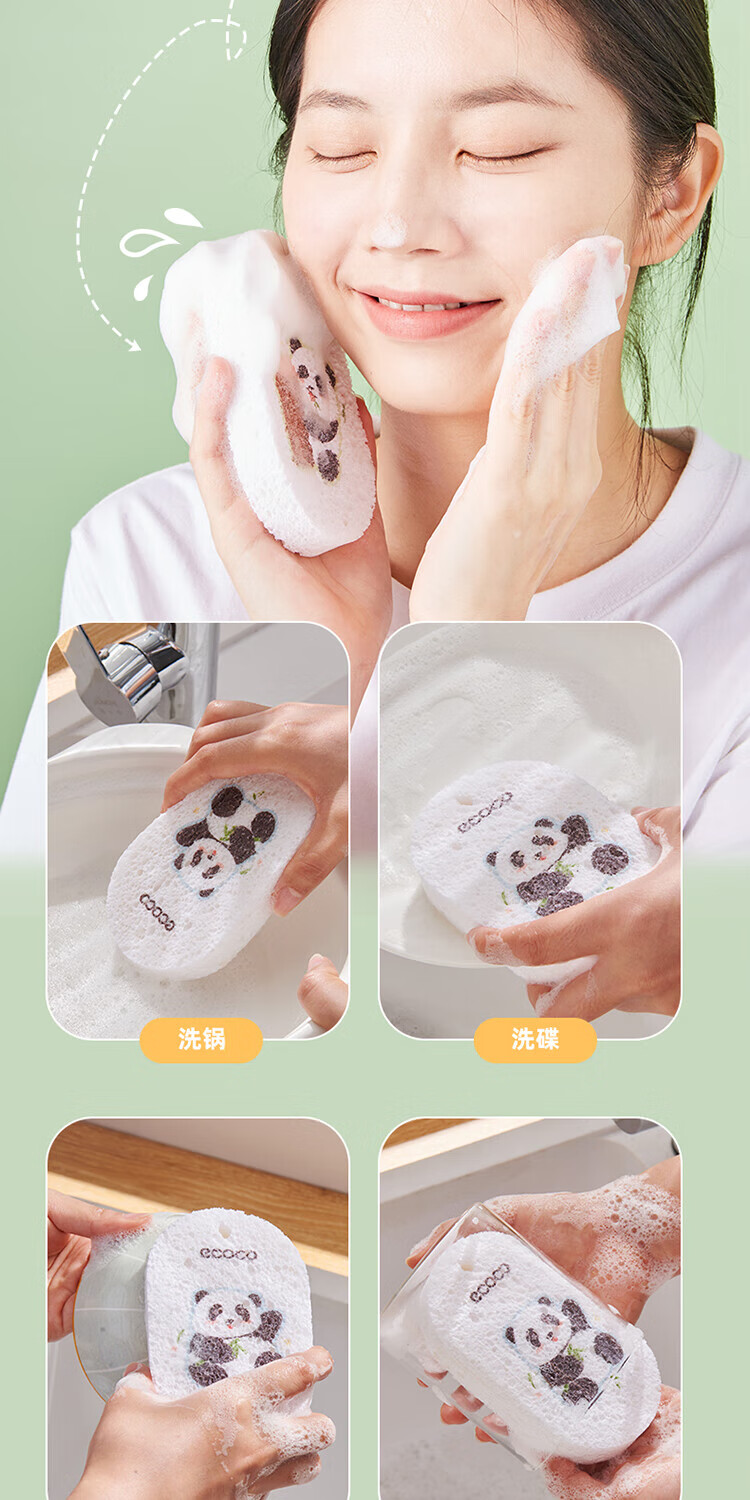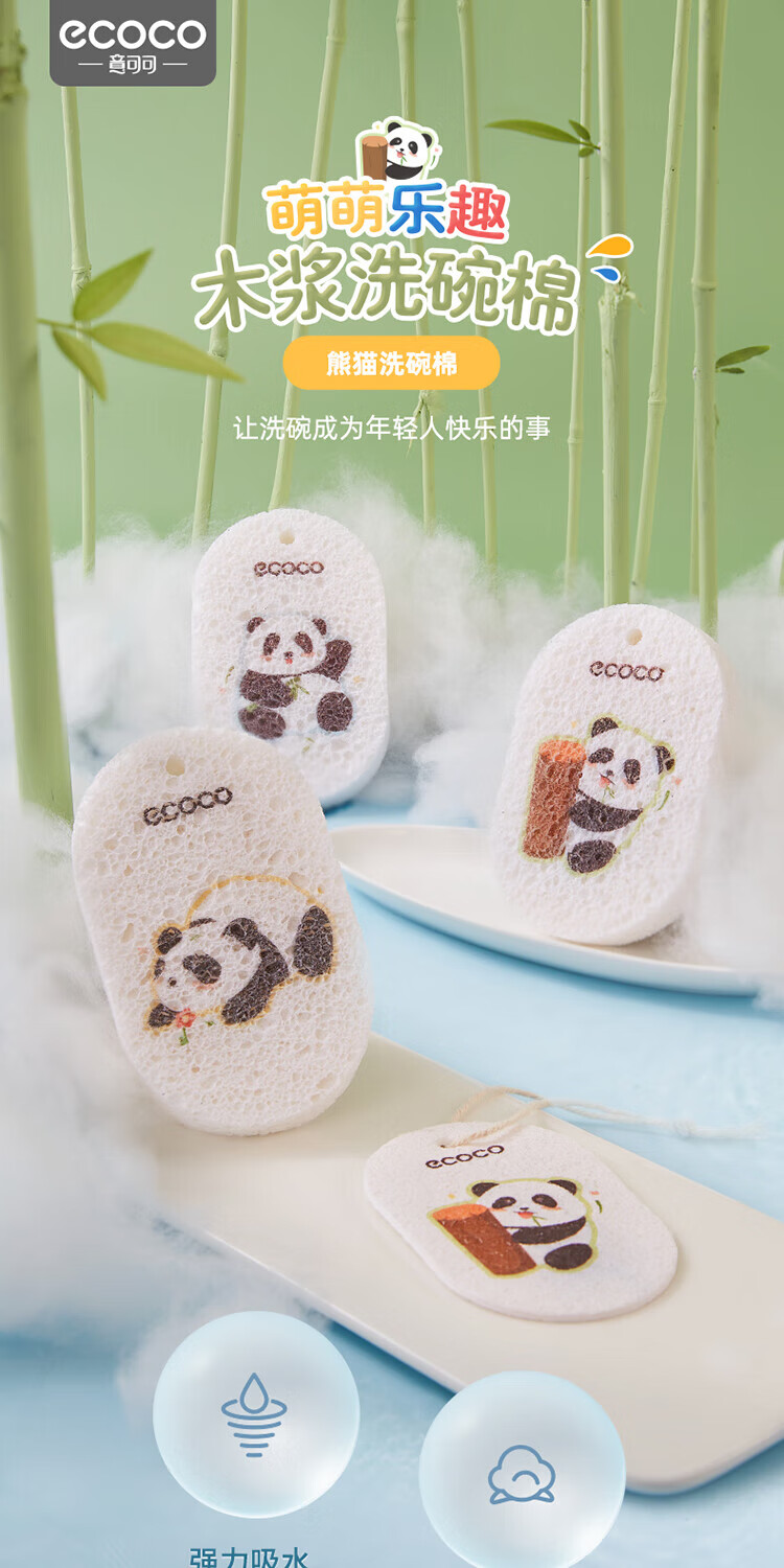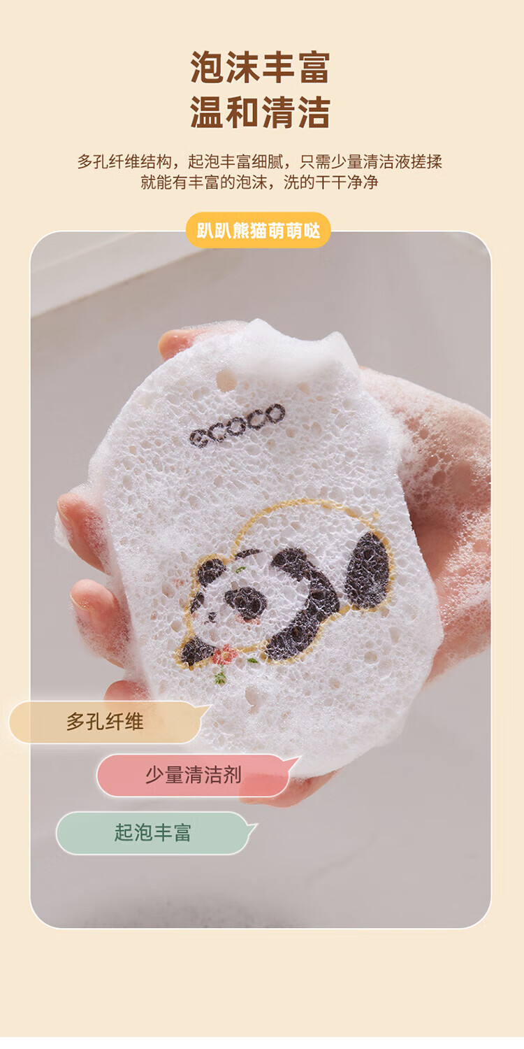 ecoco意可可 熊猫木浆洗碗棉E2387 3个混装