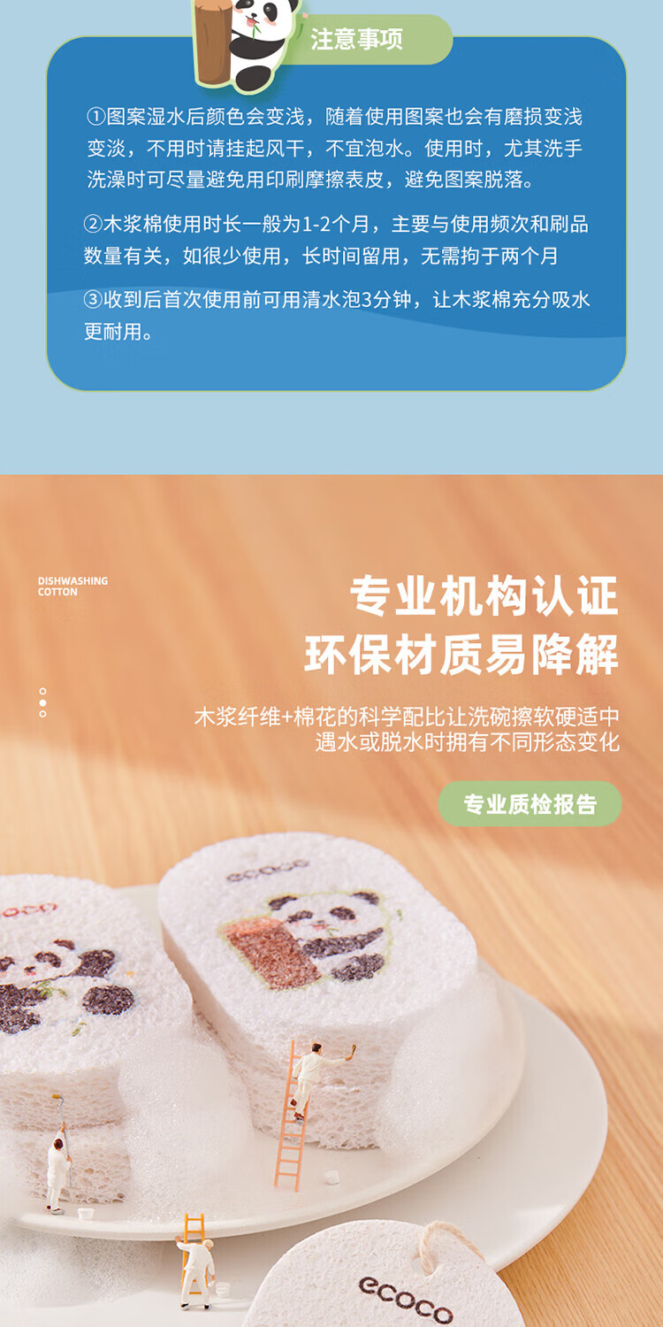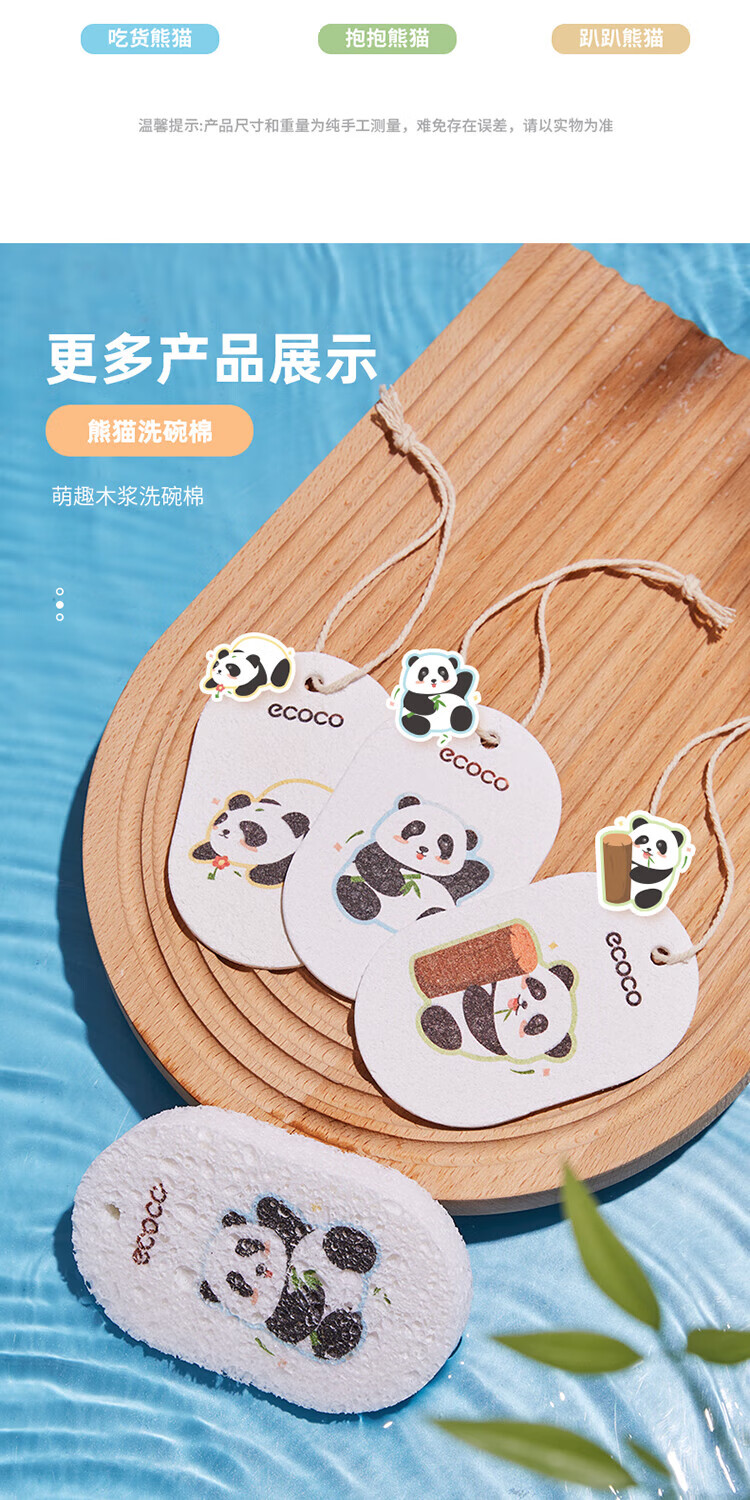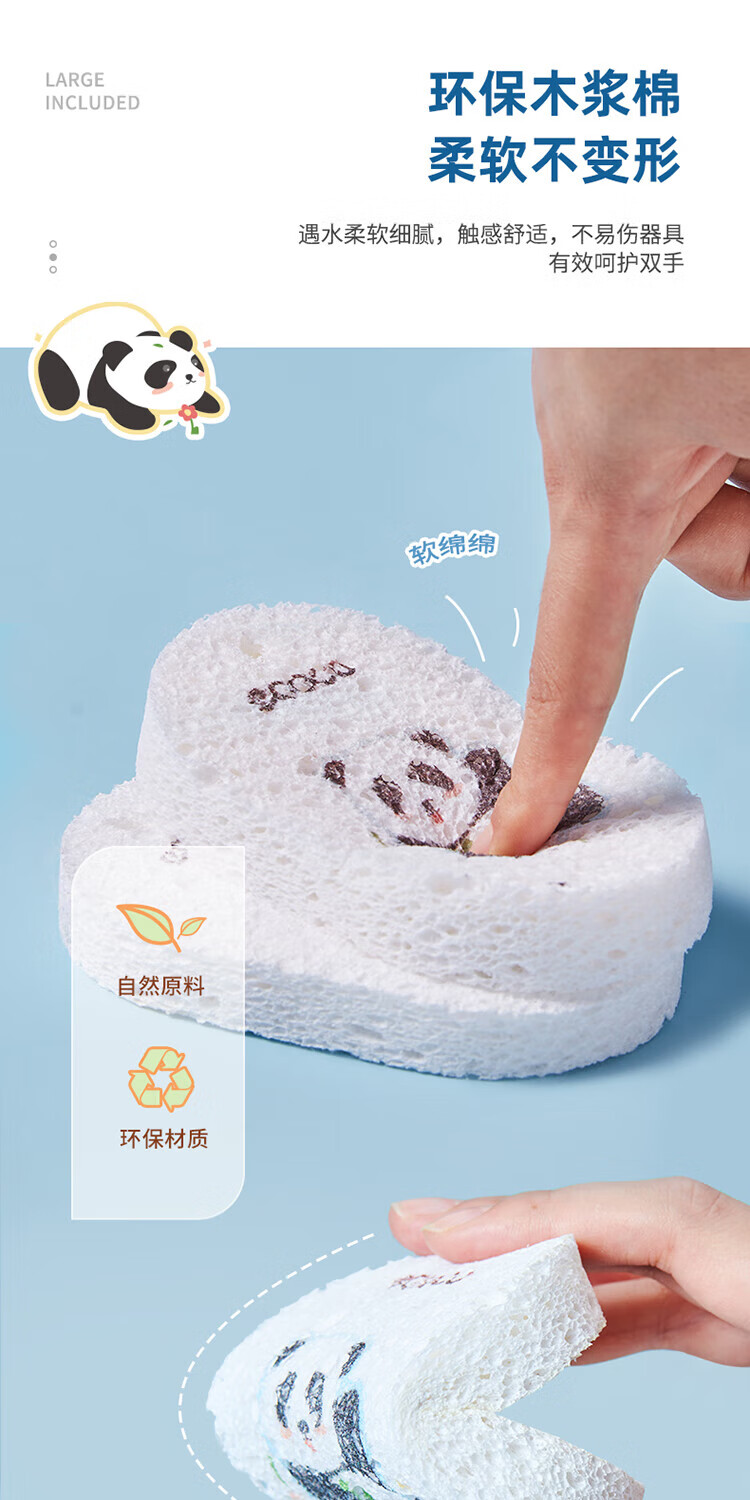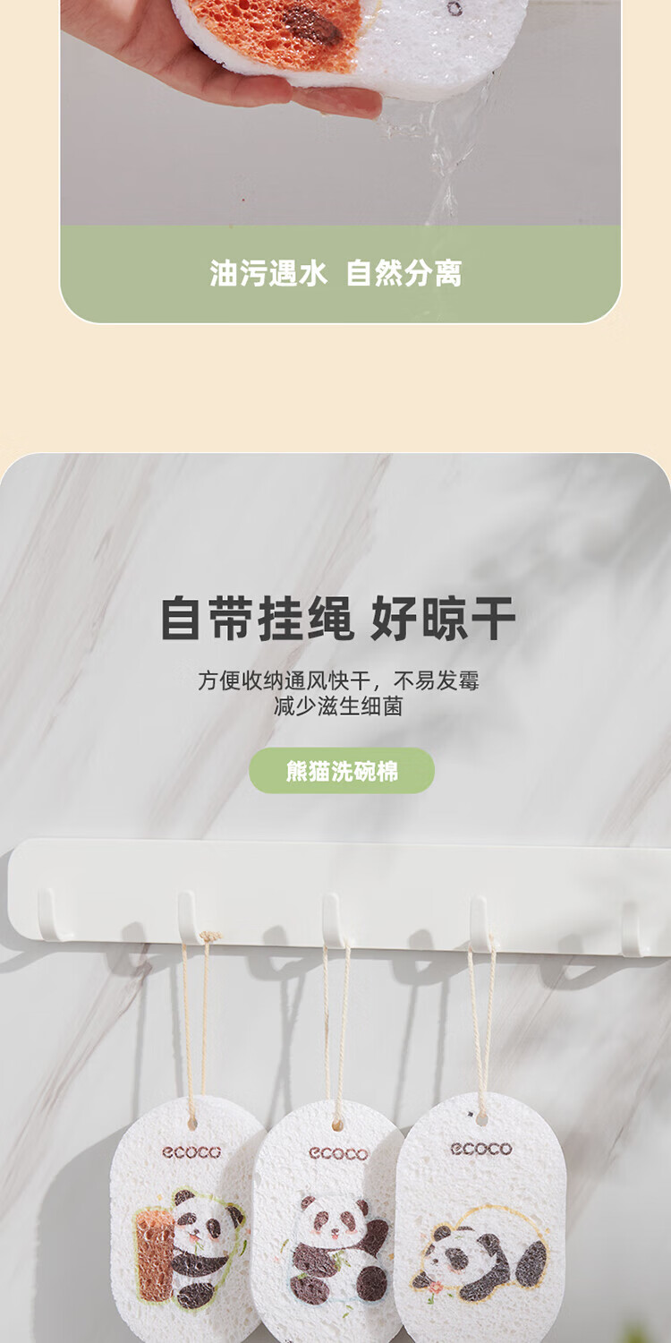 ecoco意可可 熊猫木浆洗碗棉E2387 3个混装