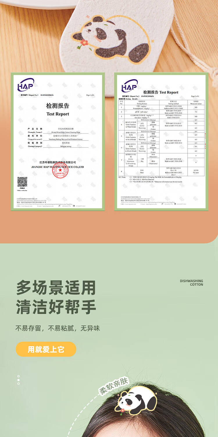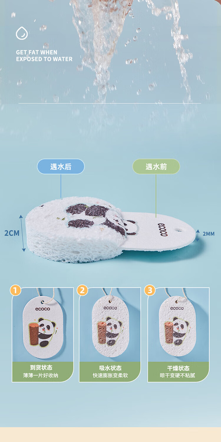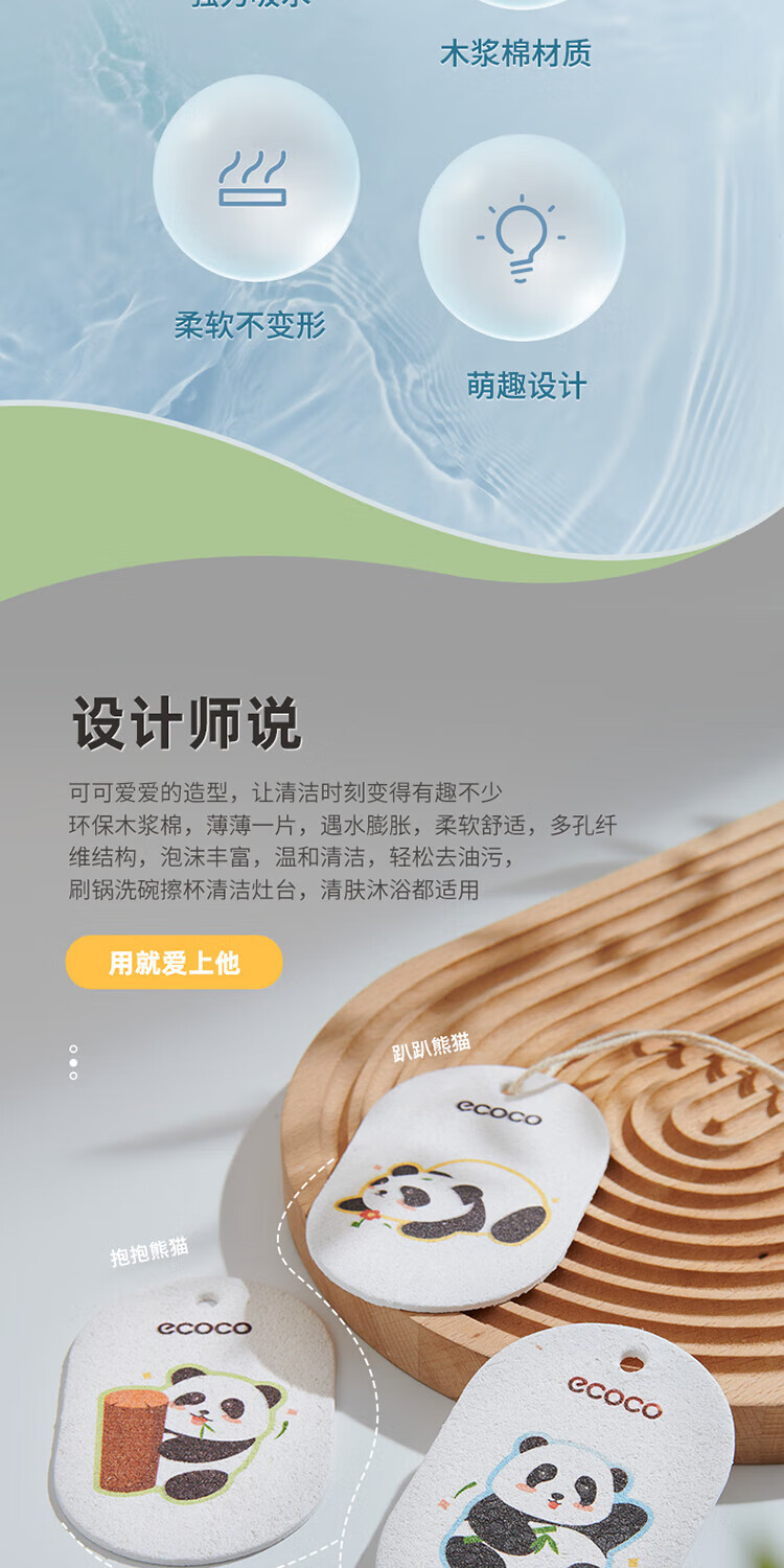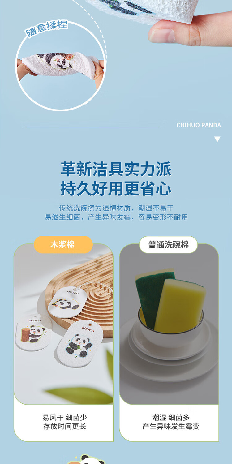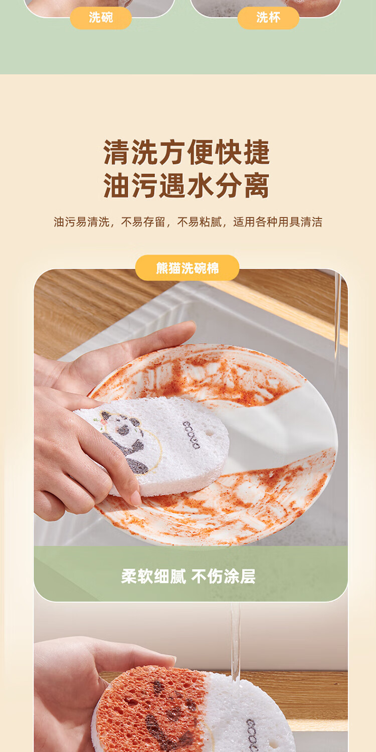 ecoco意可可 熊猫木浆洗碗棉E2387 3个混装