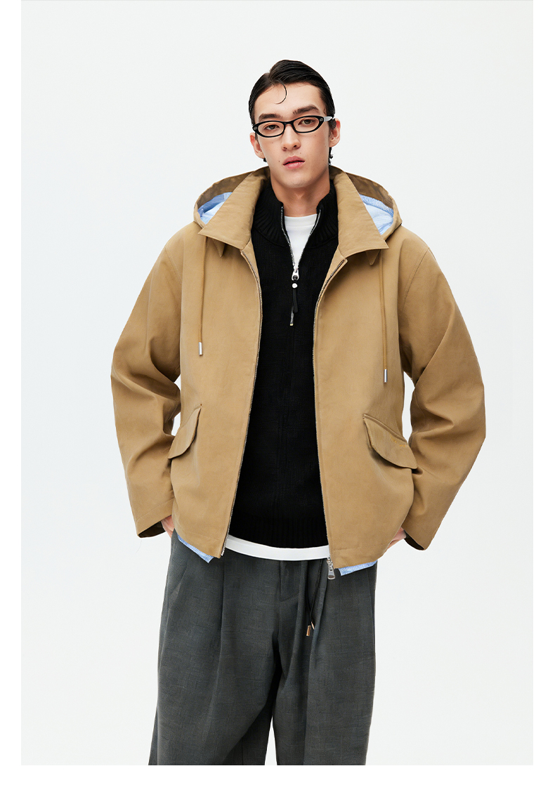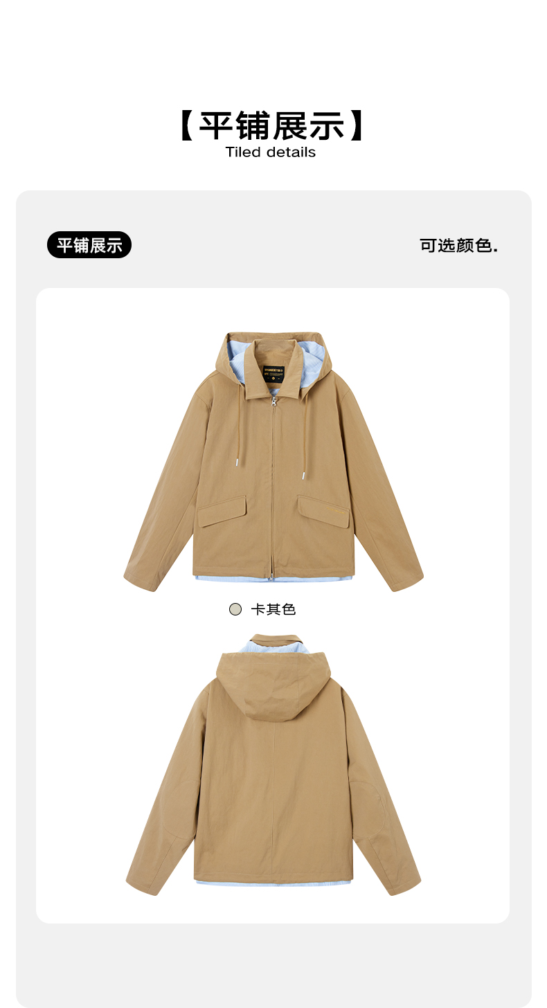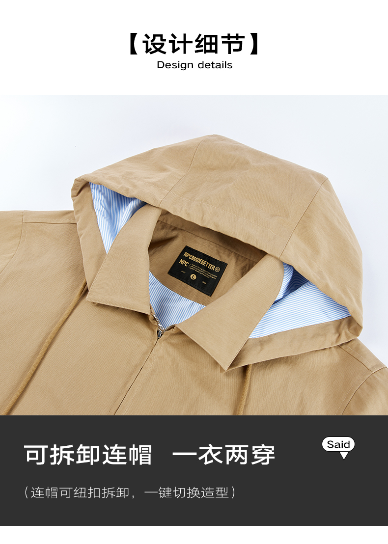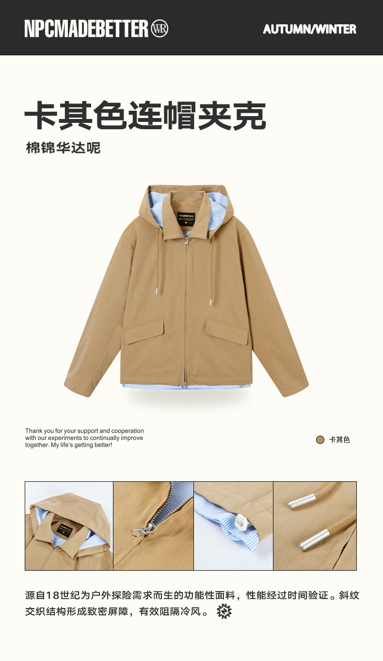 NPC潮牌棉混纺休闲连帽夹克帽子可拆卸下摆帽里条纹撞色NP5CTJ26