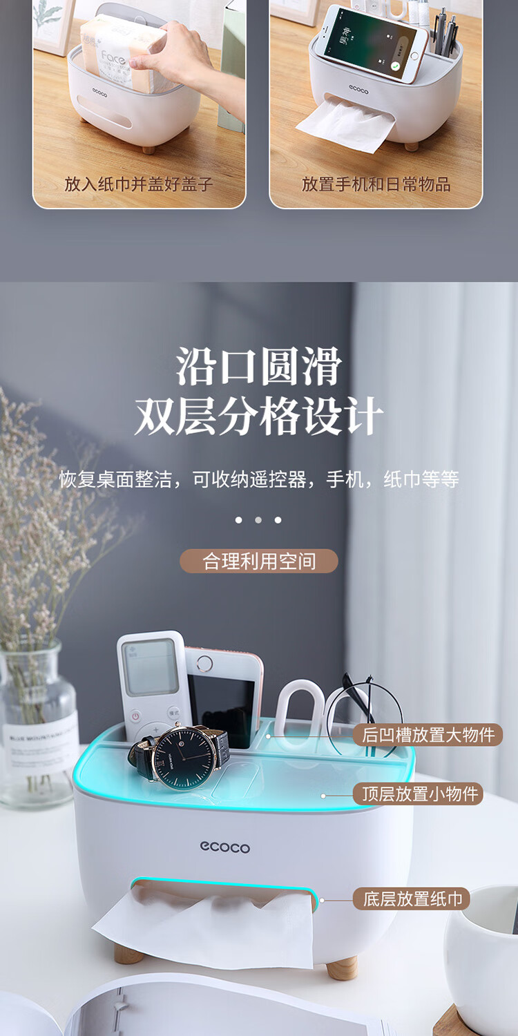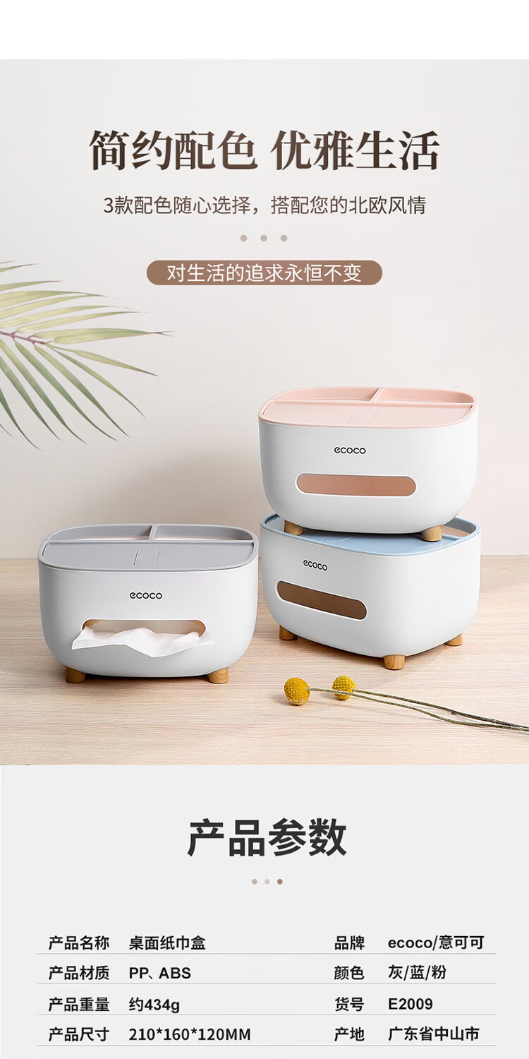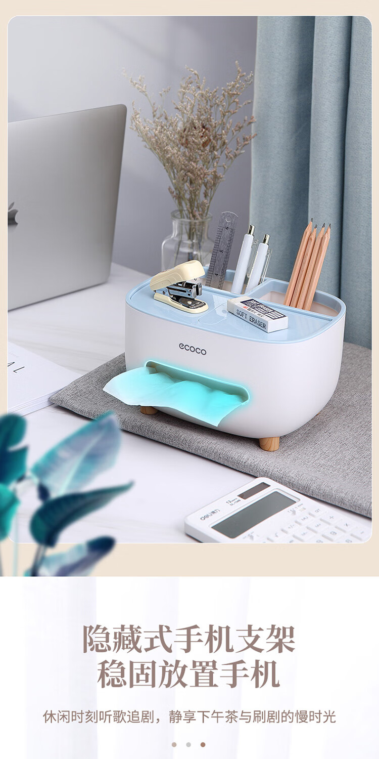 ecoco意可可 桌面纸巾盒 E2009蓝色