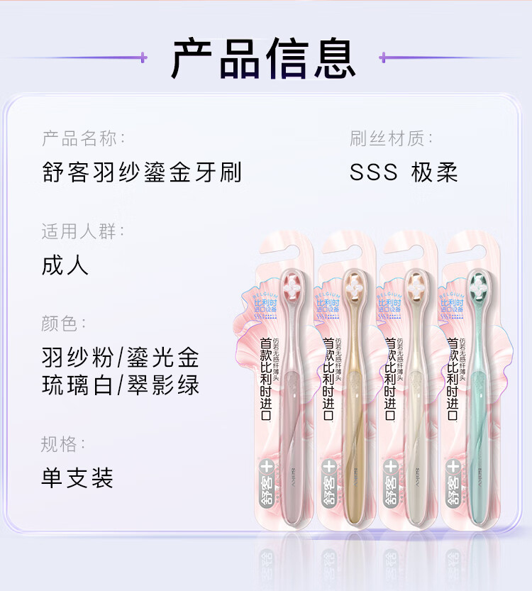 舒客羽纱鎏金牙刷单支装*6支 颜色包装随机发货