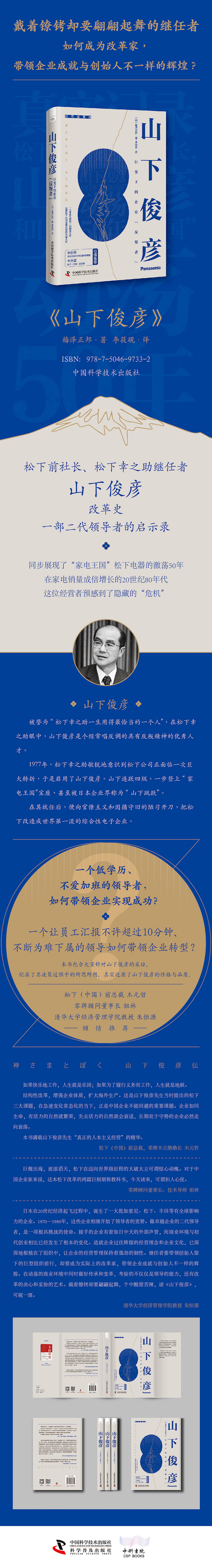 第一章 辞职,再入职 / 001 佐佐木邦的世界 / 004 空白的一年半 / 007 靠《底层》坚持下来 / 010 从松下电器公司辞职 / 013 飞利浦公司与再入职 / 016 改变黑箱 / 019 去吧 / 022 工会突然无期罢工 / 026 工资照发,但你别工作了 / 030 第二章 空调事业部部长的青春 / 033 新员工攻入市政府 / 035 幸运的男人 / 037 多维度的利润 / 040 你的能力就到此为止了吗 / 043 准点下班 / 046 天气、计划性及自主性 / 048 开始出口业务 / 052 做卓越的胆小鬼 / 054 是你呀,都怪你 / 056 首家出口专用工厂 / 059 “奇风”吹拂 / 063 超越日本母公司 / 066 贵久子高龄考取驾照 / 069 《生活手帖》事件 / 073 你要承担责任 / 077 第三章 在确定新社长之前 / 081 从亲族联盟到神圣体制 / 081 拥护者高桥荒太郎 / 084 不合拍的两个人 / 087 松下幸之助的不信任和疑惑 / 090 毁灭啊 / 093 谁推举了山下俊彦? / 097 欲望在更深之处 / 100 仁义和体贴 / 106 第四章 成为“危机感先生” / 109 并不是个了不起的社长 / 109 倾听一线真实的声音 / 112 为事业部评级 / 117 向芝麻粉碎机学习 / 120 首度在经营方针发表会上发言 / 124 “罢免”四位副社长和三由清二 / 128 宴饮和大调动 / 132 赋予感动 / 136 秘书的任期三年为止 / 140 每十分钟看一次时间 / 142 与司马辽太郎聊天 / 145 大家工作开心吗? / 148 登山 / 150 第五章 被指认为反叛者 / 155 烽烟起 / 156 即刻离职 / 159 迷茫的松下幸之助 / 161 分离独立还是扶植 / 164 成为“没有松下(幸之助)的松下电器公司” / 167 下午4点半的饭馆 / 170 第六章 录像机的时代 / 175 新社长高举“Z”字旗 / 176 不要气馁 / 180 日本胜利公司的挑战 / 183 录像机系统之争 / 186 家用录像系统是共同研发吗 / 190 你是间谍吗? / 193 家用录像系统大家庭 / 195 第七章 “老巢”整顿与和解 / 201 你也这么认为吗? / 204 态度180度转变 / 207 谷村新司和加山雄三 / 210 三家公司 / 213 马来西亚还是美国 / 216 礼仪特训 / 219 贪欲与无欲 / 222 松下幸之助的着眼点 / 225 让松下正治“引退” / 228 第八章 “六一行动”变革“家电王国” / 231 目标世界第一 / 231 打造“战略总公司” / 234 超越组织 / 238 在德国推销经营理念 / 241 从“渣土场”出发 / 245 横滨的一夜 / 247 硬着头皮也要干 / 251 企业一旦变大就可能会变弱 / 254 发动权力、抑制权力 / 258 保持小个子与变为大企业 / 260 第九章 以人与感动为核心 “悖论式经营”全面铺开 / 265 成为半导体的“领头羊” / 265 两家半导体研究所 / 269 让人发“狂” / 271 智能家电,Z后开放的花 / 273 “人力车不会消失” / 275 并购无法让人感动 / 279 只说一句“哦” / 283 总公司不会救你 / 286 松下寿电子工业公司:自成一格的经营方式 / 288 大荣超市对策和“零售店变身” / 292 第十章 与世界同步 / 299 “拜托你做这件事,是我错了” / 300 不吝给予 / 303 险些爆发的全面战争 / 306 自下而上的整合 / 308 “虚岁”和“澡堂” / 310 “爱徒”间的对决 / 312 我不是集团的社长 / 315 工作生活两不误 / 319 御巢鹰山的悲剧 / 322 Z后一项大工作 / 325 挑战困难 / 328 第十一章 与“松下家族”对决 / 331 长江上的乘船旅行 / 333 阿蒙森和斯科特 / 335 利润是次要的 / 338 拒绝家族式经营是松下幸之助的遗言之一 / 342 “出类拔萃”之辈 / 346 回到“家电王国”的原点 / 348 三年时间,组合解体 / 351 啊?居然是森下洋一 / 355 到目前为止,你做了什么? / 358 第十二章 中村邦夫的改革 / 363 理性主义的男人 / 365 破坏和战略失误 / 367 被当作耳边风的经营理念 / 371 中村邦夫改革的归宿 / 375 公司名称变了吗? / 379 永远“一唱一和” / 381 终 章 被继承的山下俊彦 / 385 为何会在智能手机领域一败涂地? / 386 被擦掉的事物 / 389 基恩士与大金 / 392 复活事业部体制 / 395 山下俊彦的余热 / 399 后记 / 405 译后记 / 407