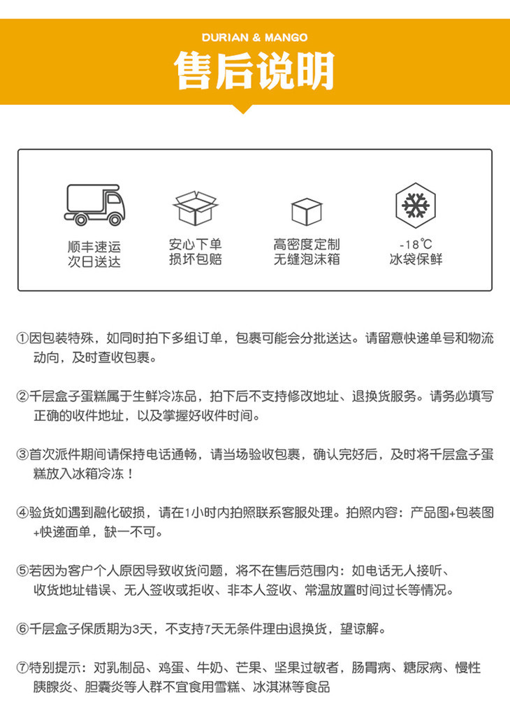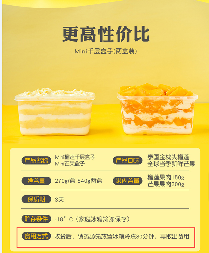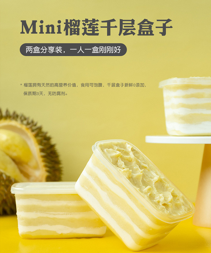 【顺丰包邮】榴莲果肉蛋糕 mini千层盒子270g