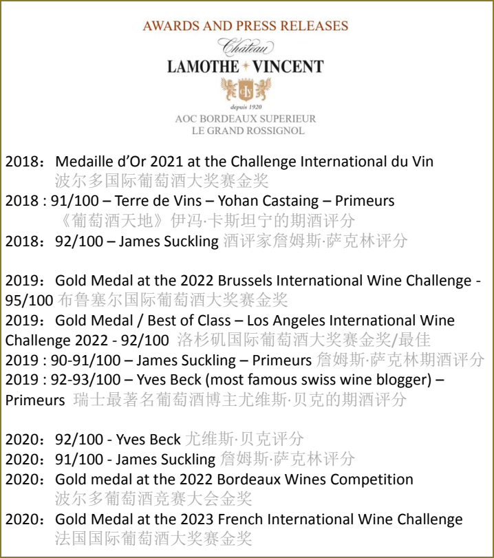 2018/2019/2020 CHATEAU LAMOTHE VINCENT AOC BORDEAUX SUPERIEUR RED - LE GRAND ROSSIGNOL (100% MERLOT)