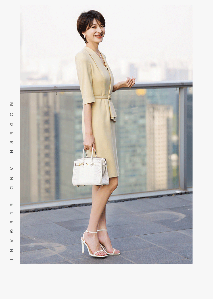 法式高级感连衣裙女春夏新款职业气质V领修身别致裙子