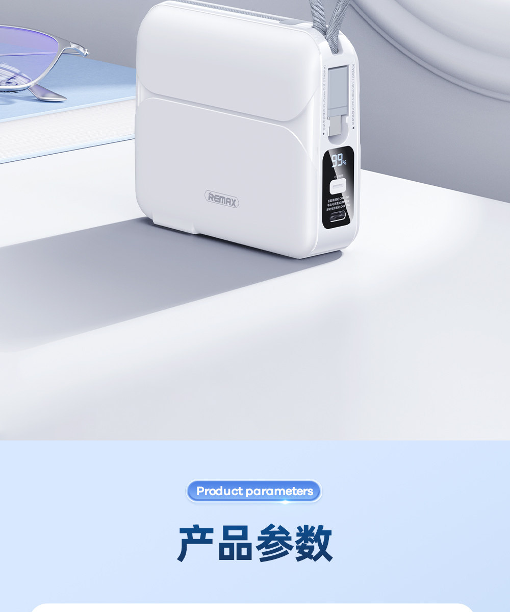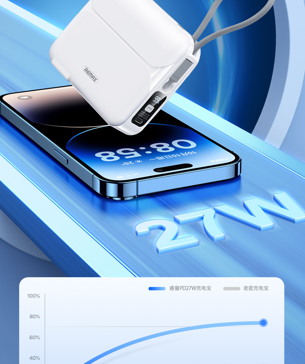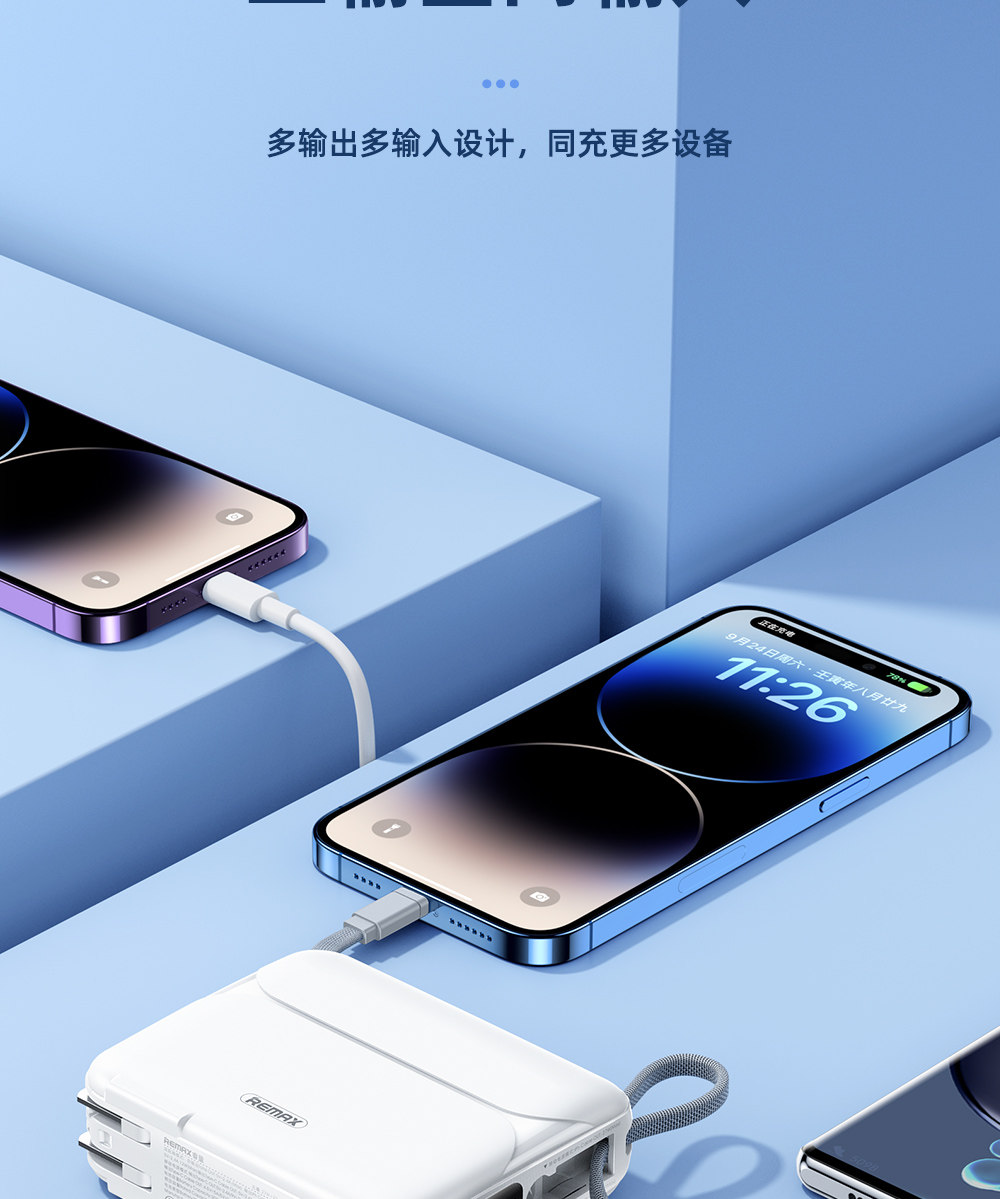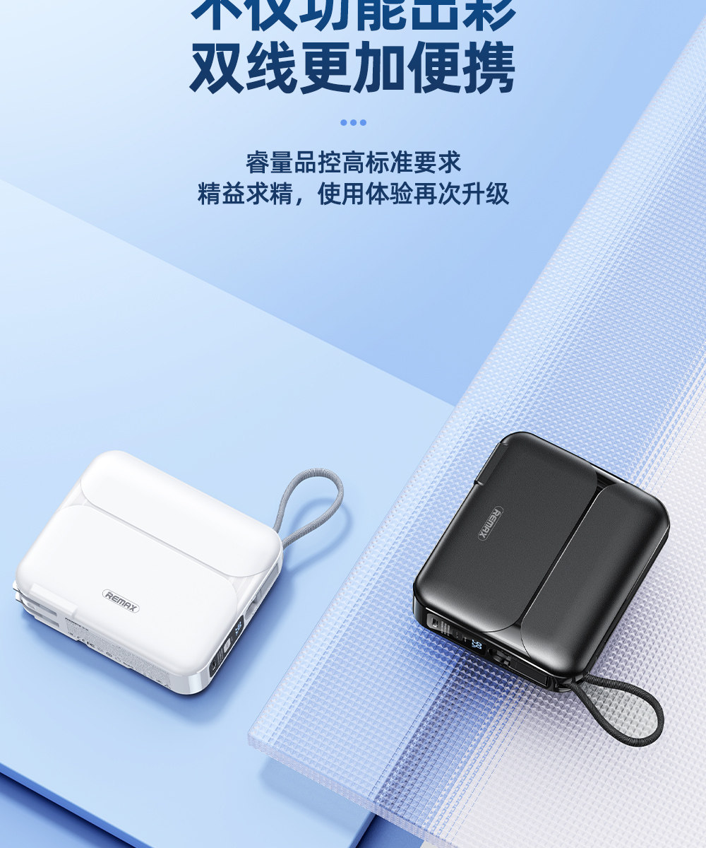 【新国标3c认证】remax睿量充电宝20000毫安自带双线27W快充