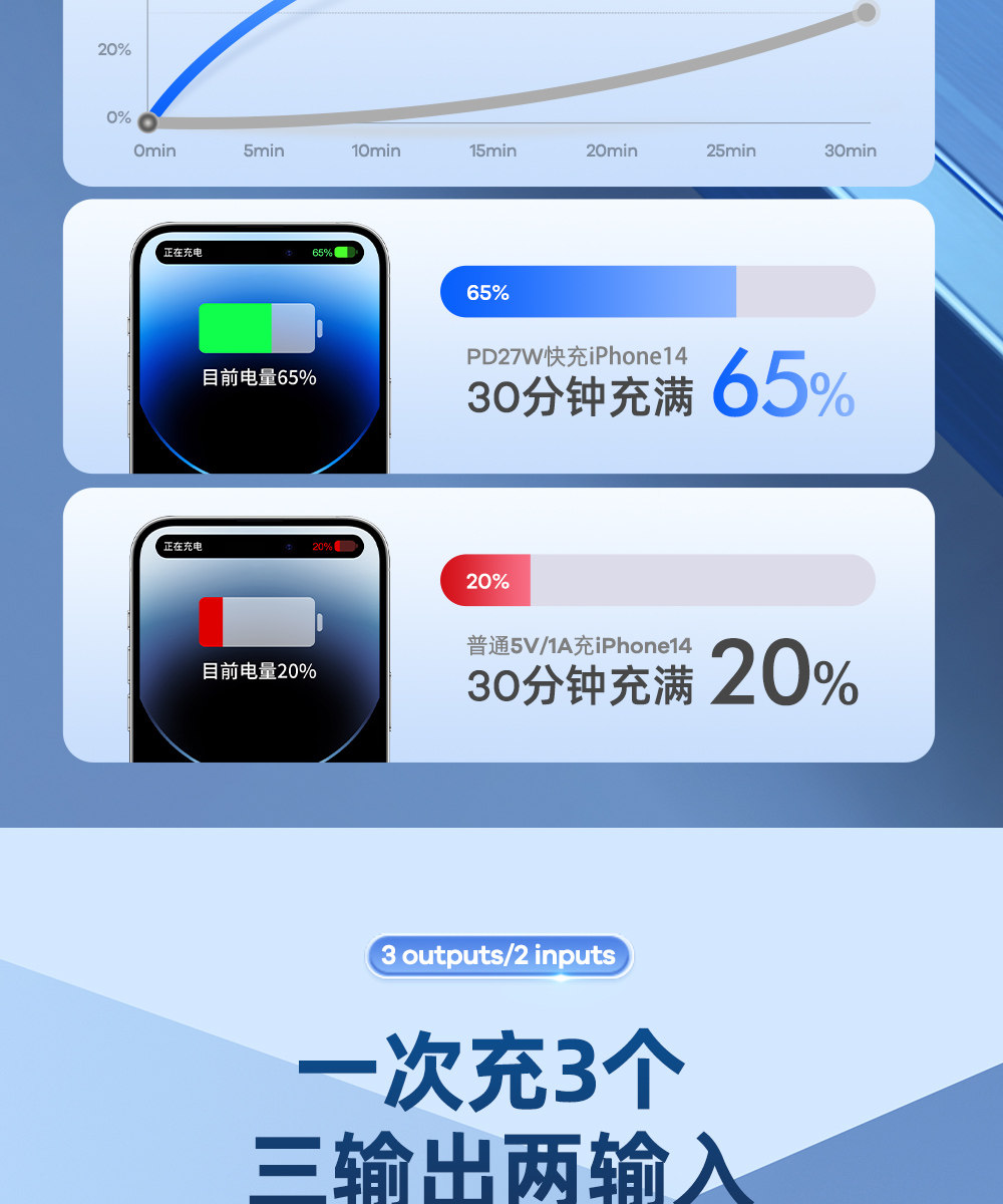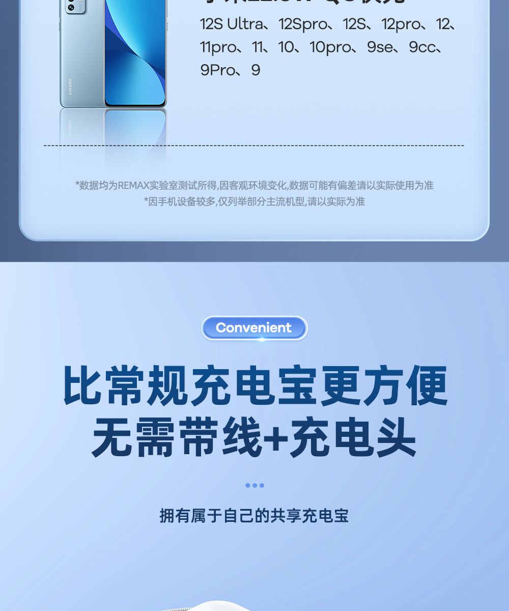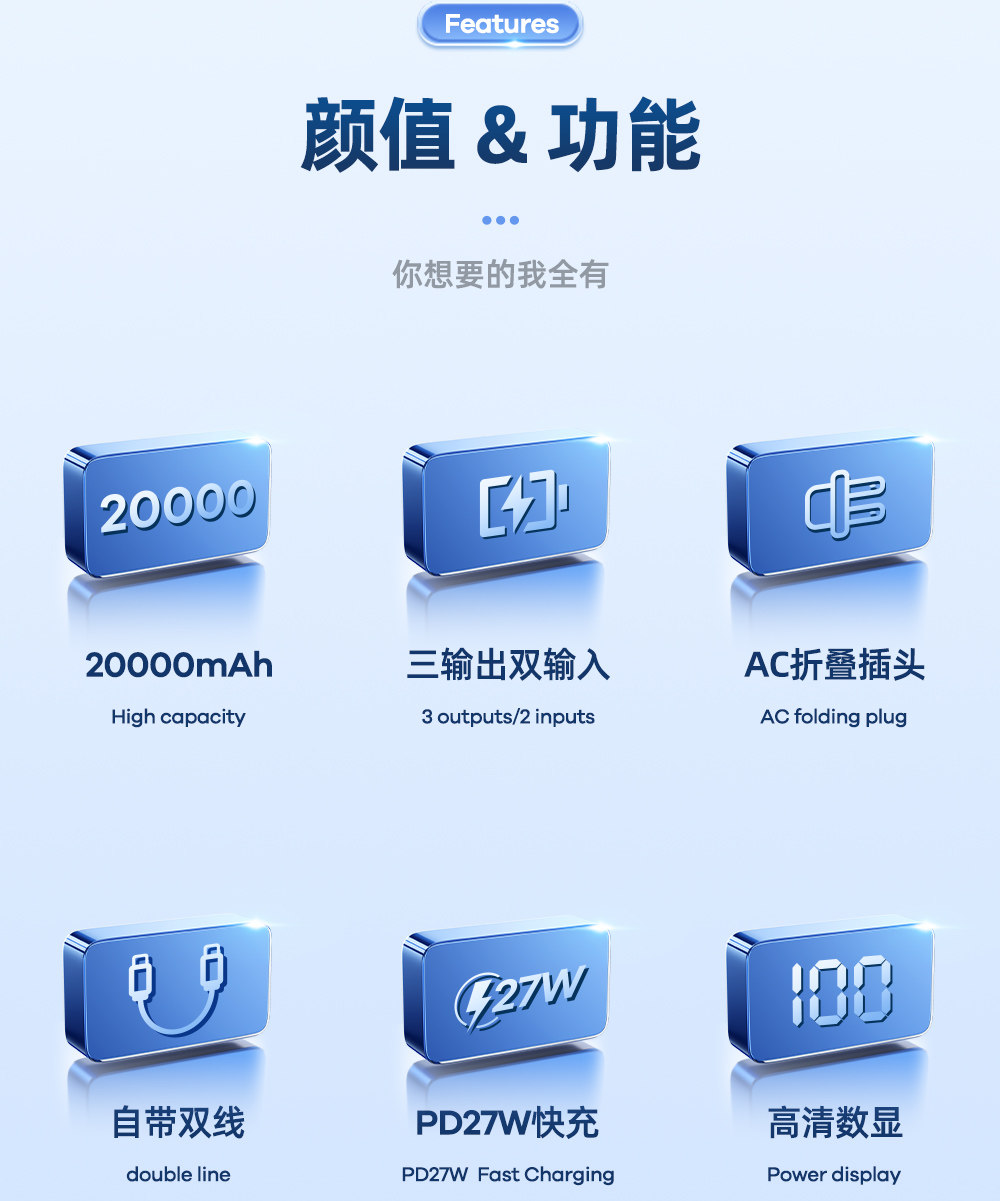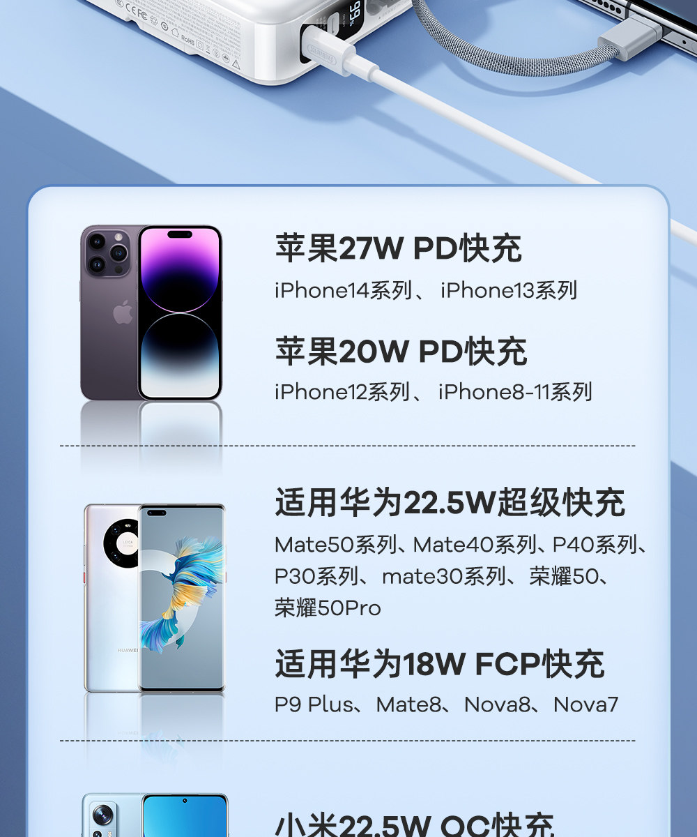 【新国标3c认证】remax睿量充电宝20000毫安自带双线27W快充