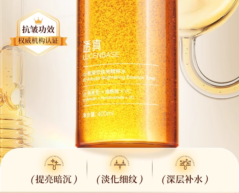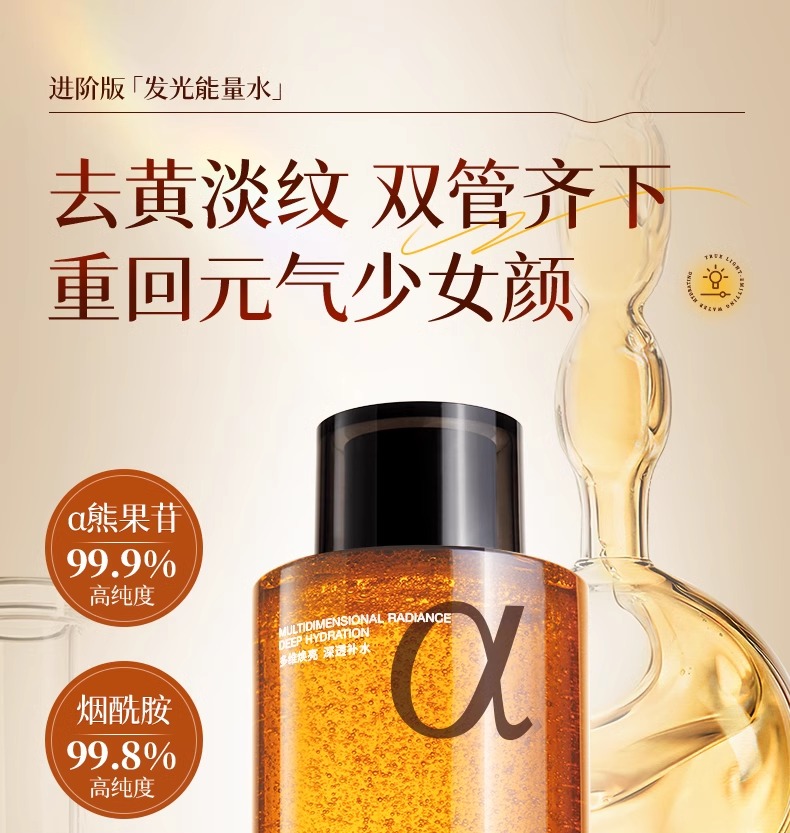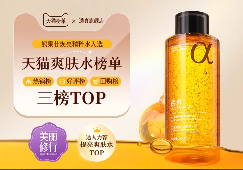 【脸越黄越能“白”】α-熊果苷焕亮精粹水400ml#熊果苷发光爽肤水女补水保湿精华去黄提亮收缩毛孔湿敷水男乳护肤