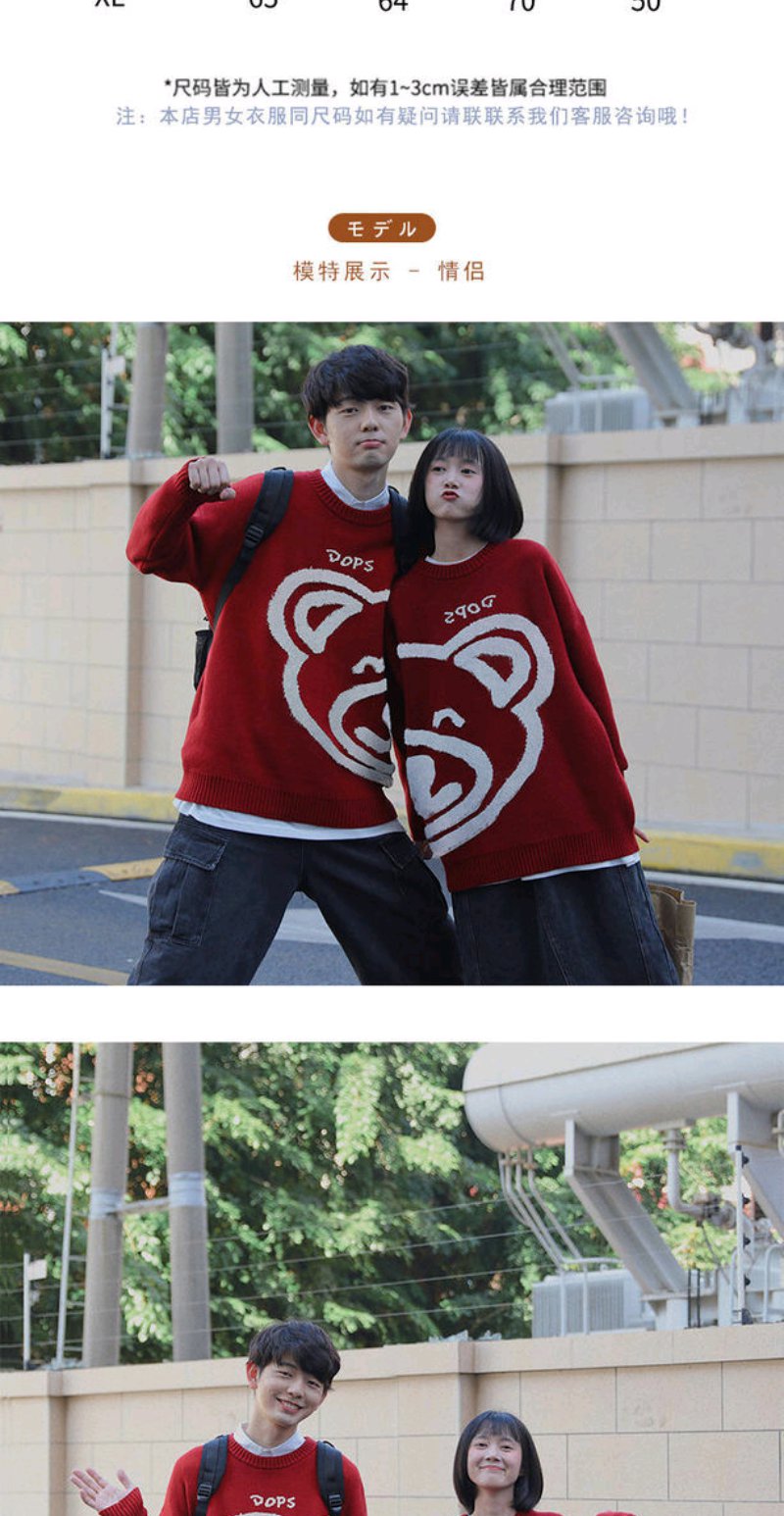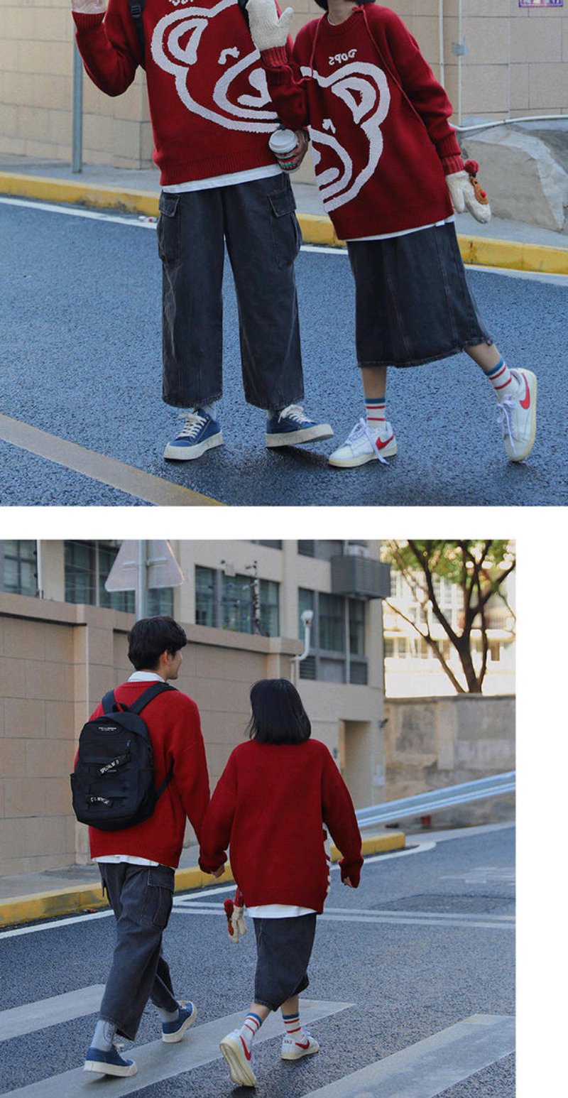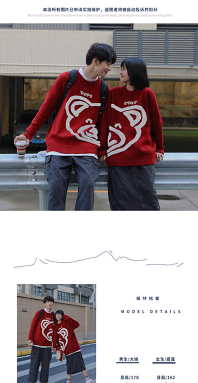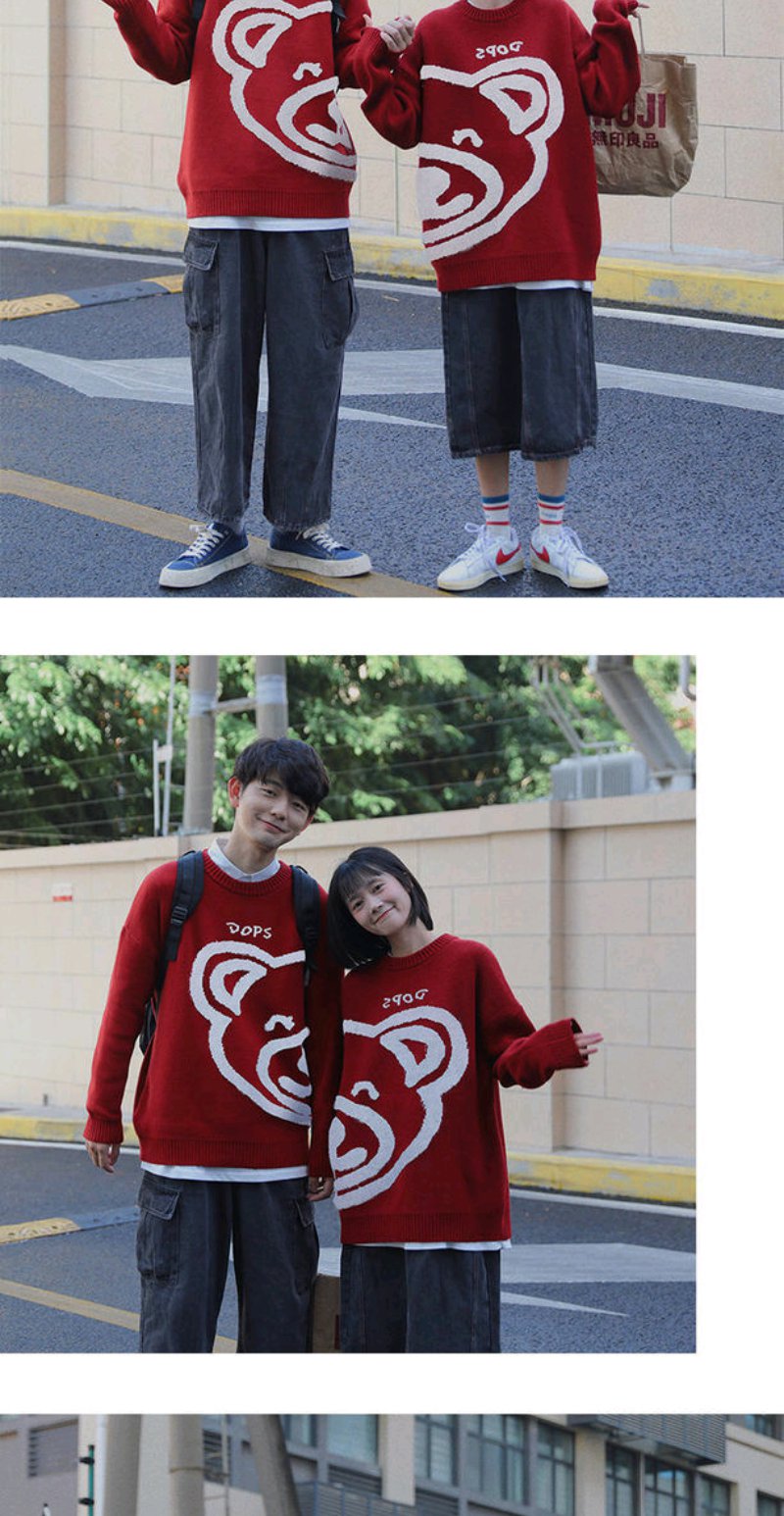 衫岛冬季跨新年情侣毛衣女韩版ins宽松慵懒风小熊针织衫上衣