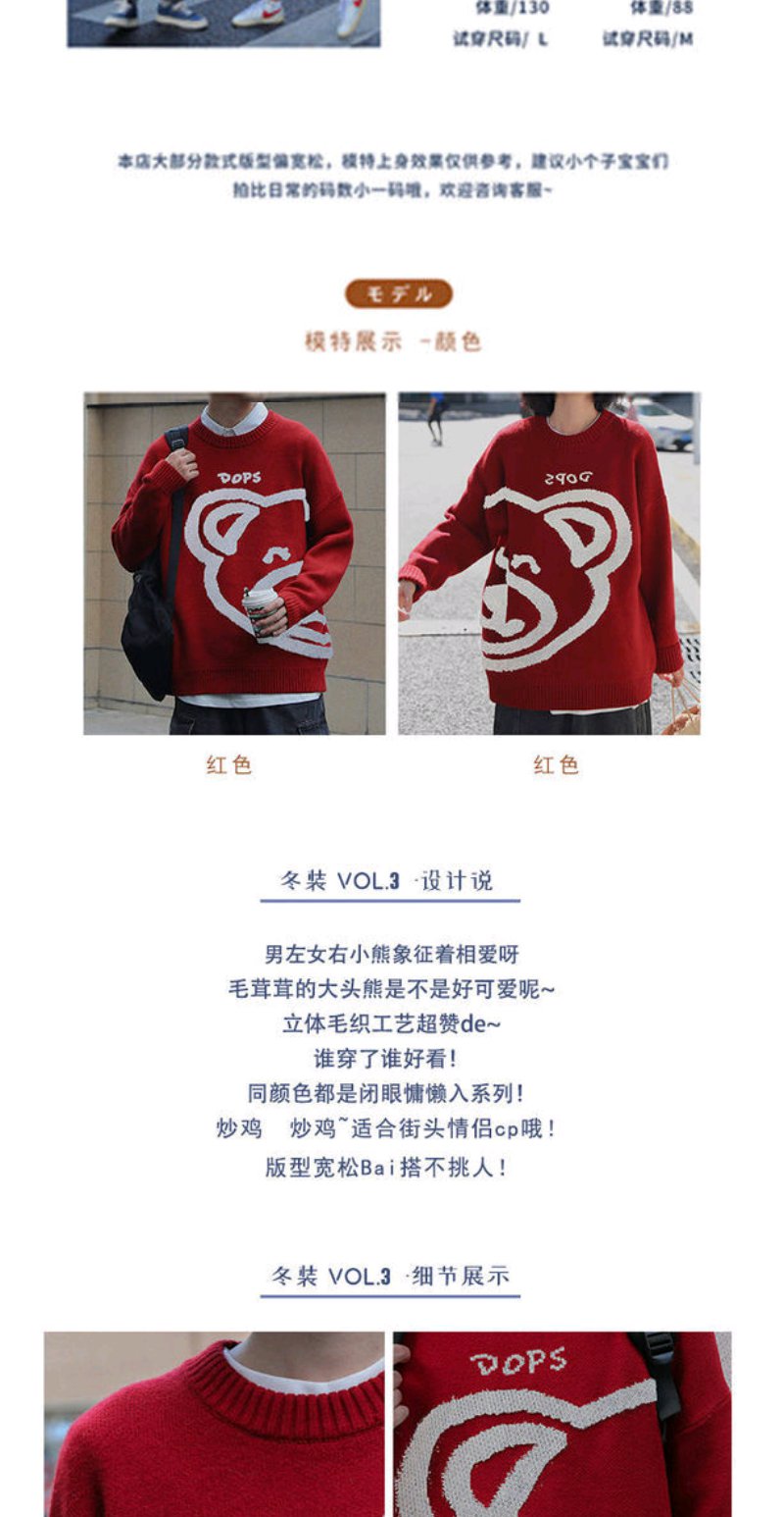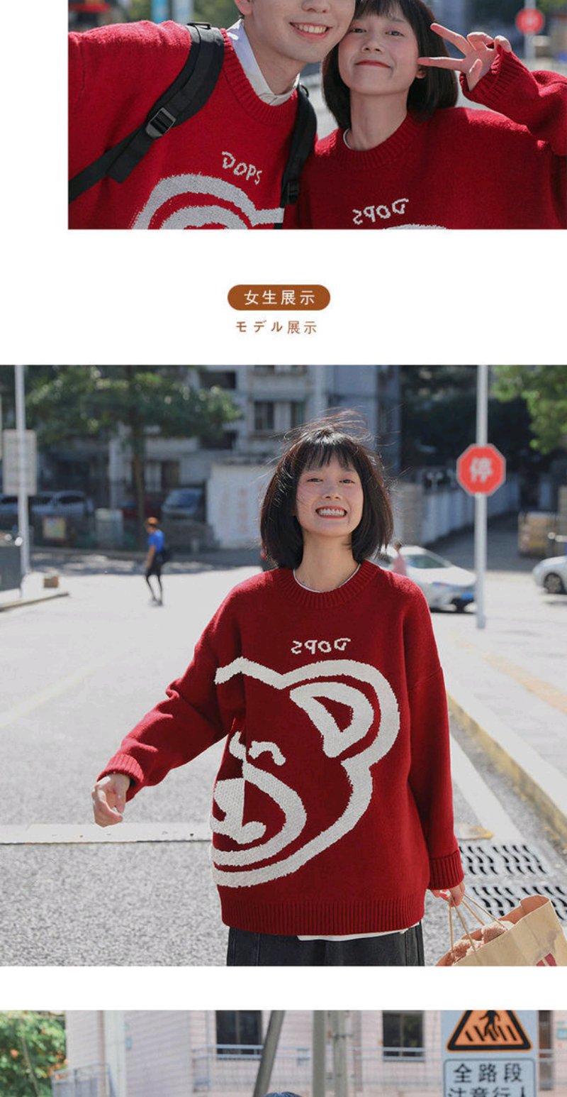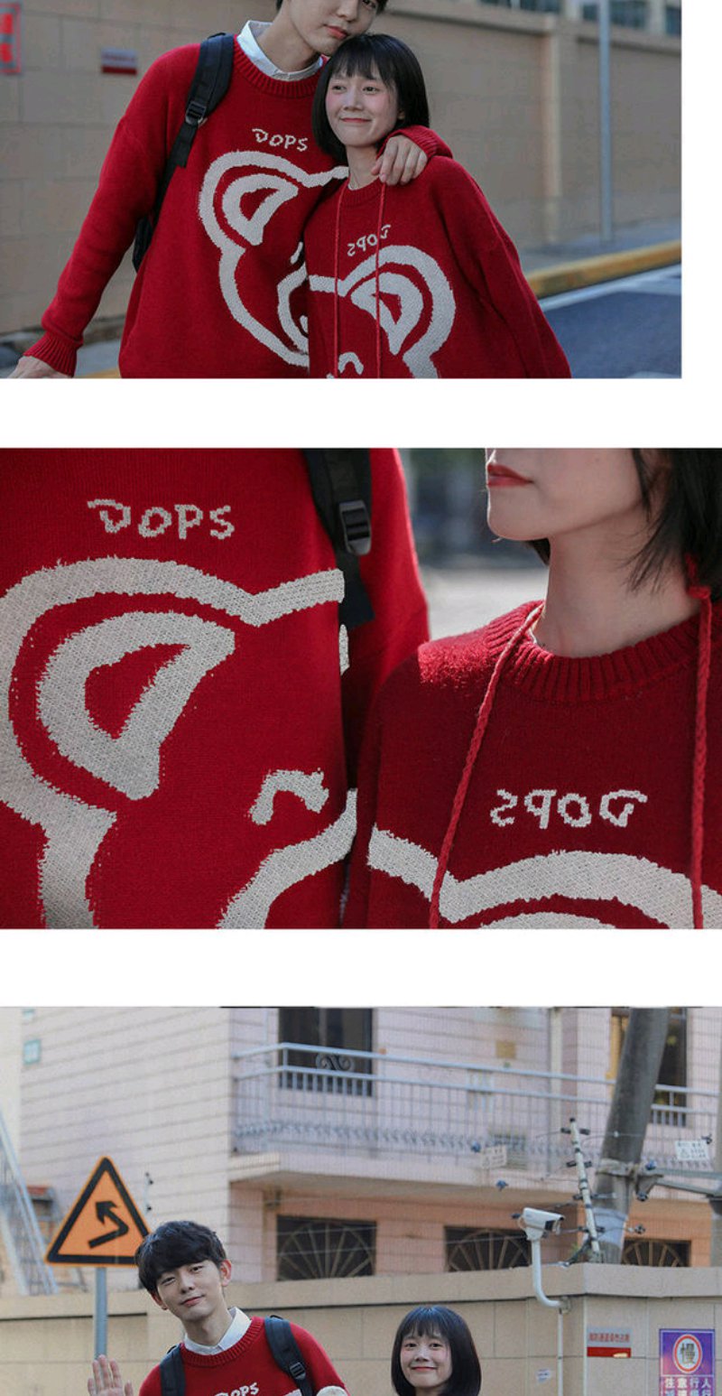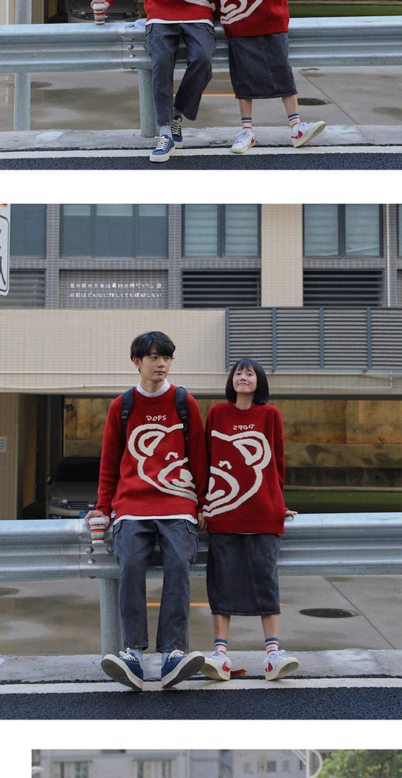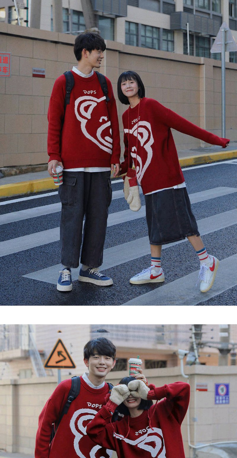 衫岛冬季跨新年情侣毛衣女韩版ins宽松慵懒风小熊针织衫上衣