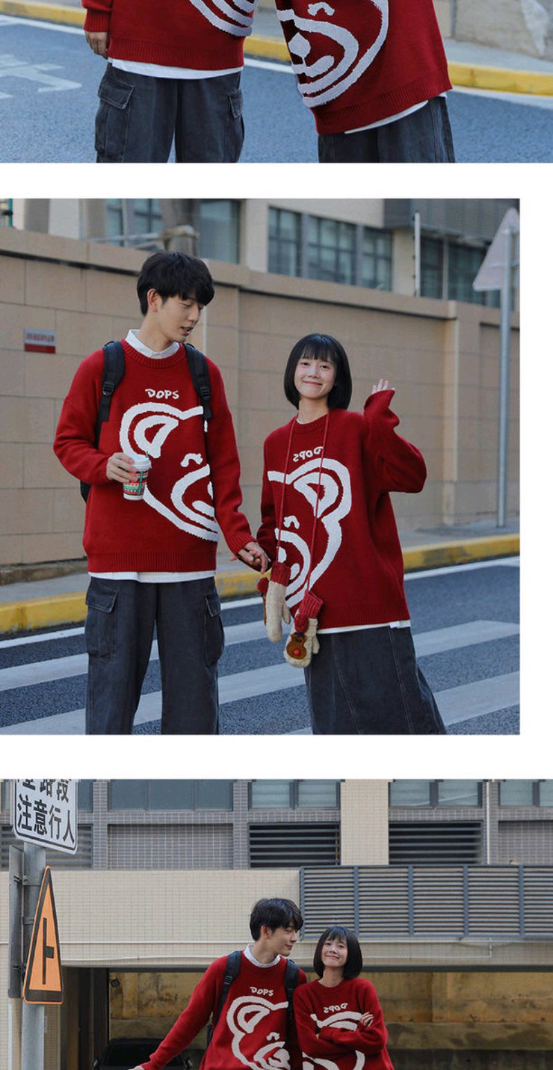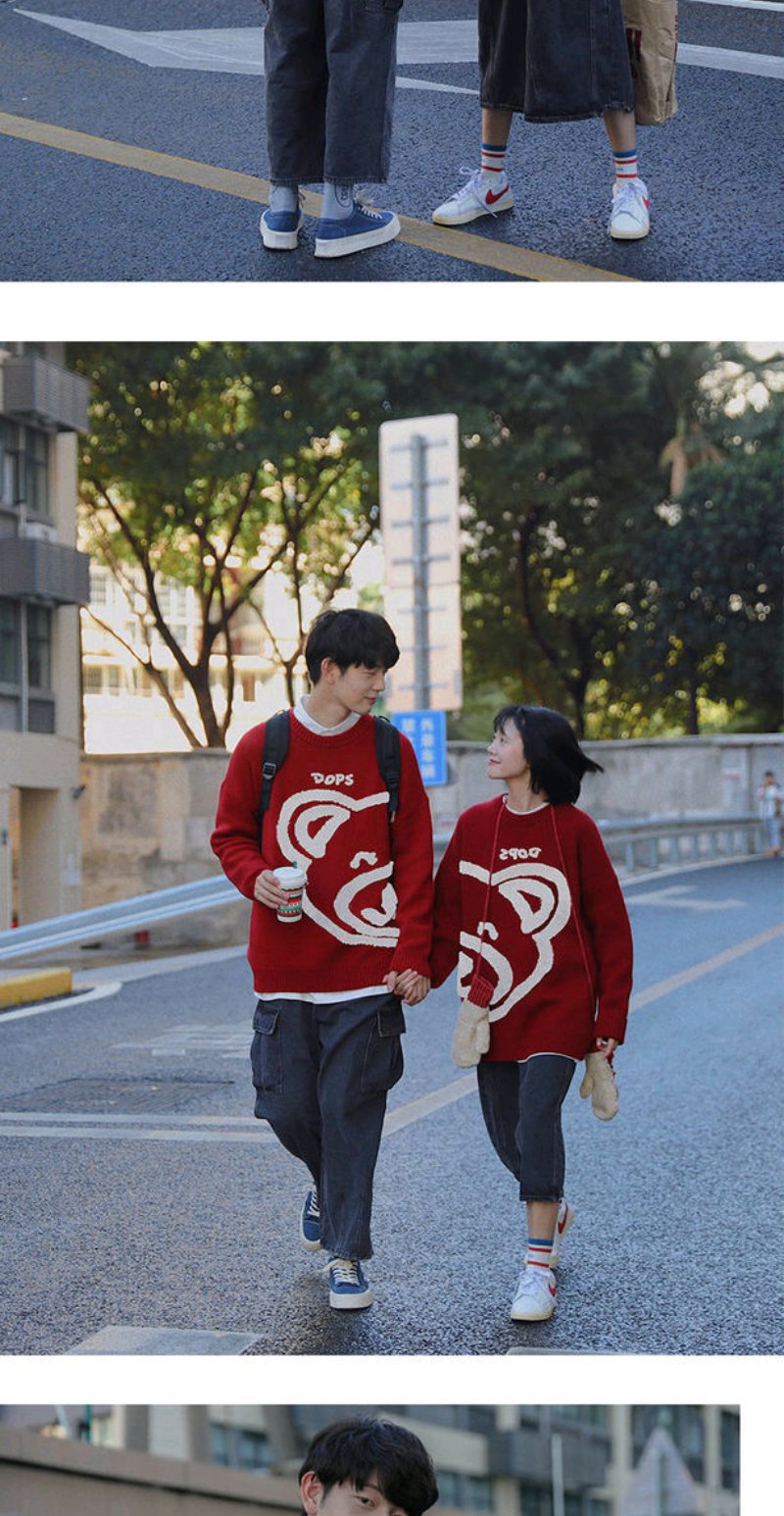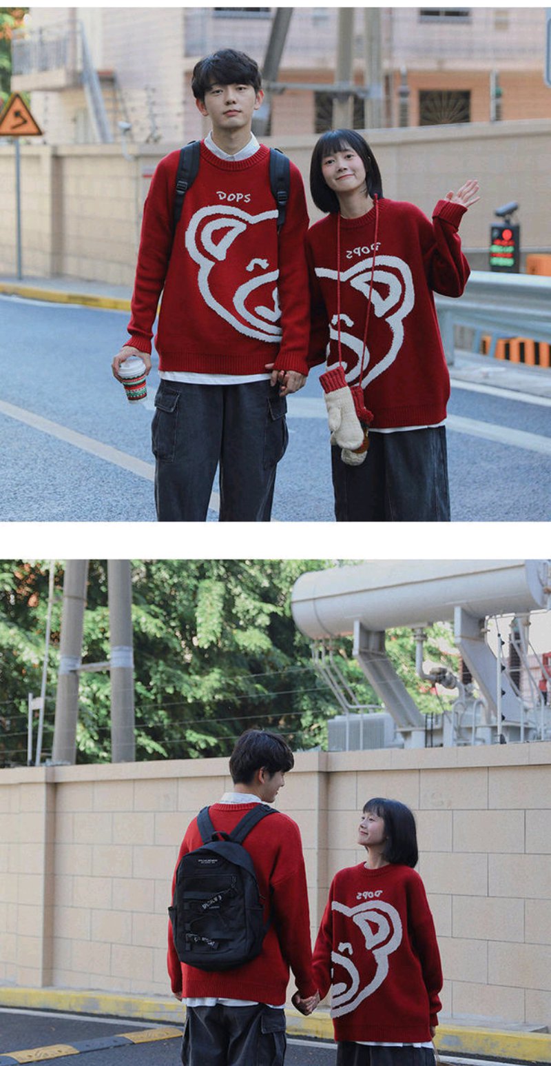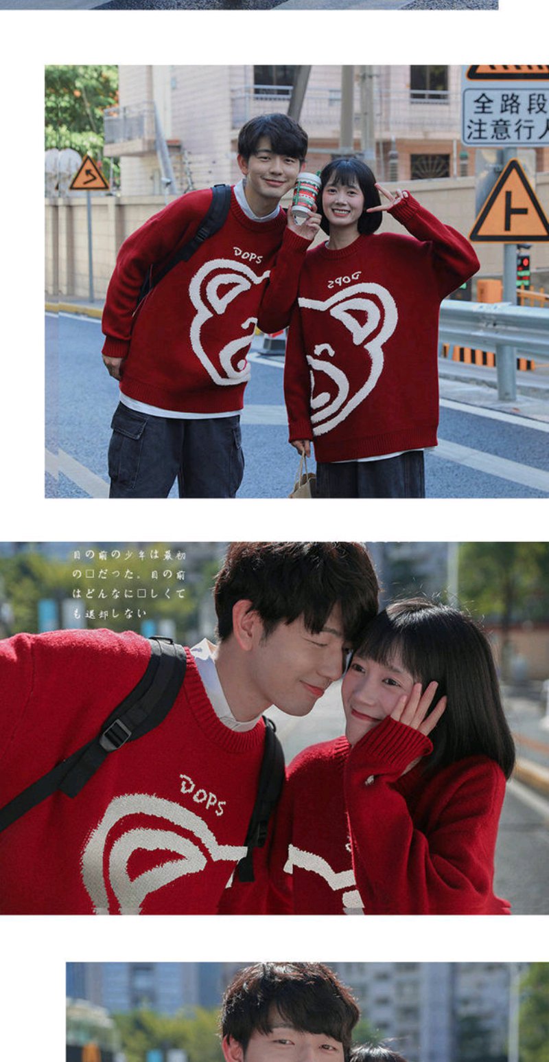 衫岛冬季跨新年情侣毛衣女韩版ins宽松慵懒风小熊针织衫上衣