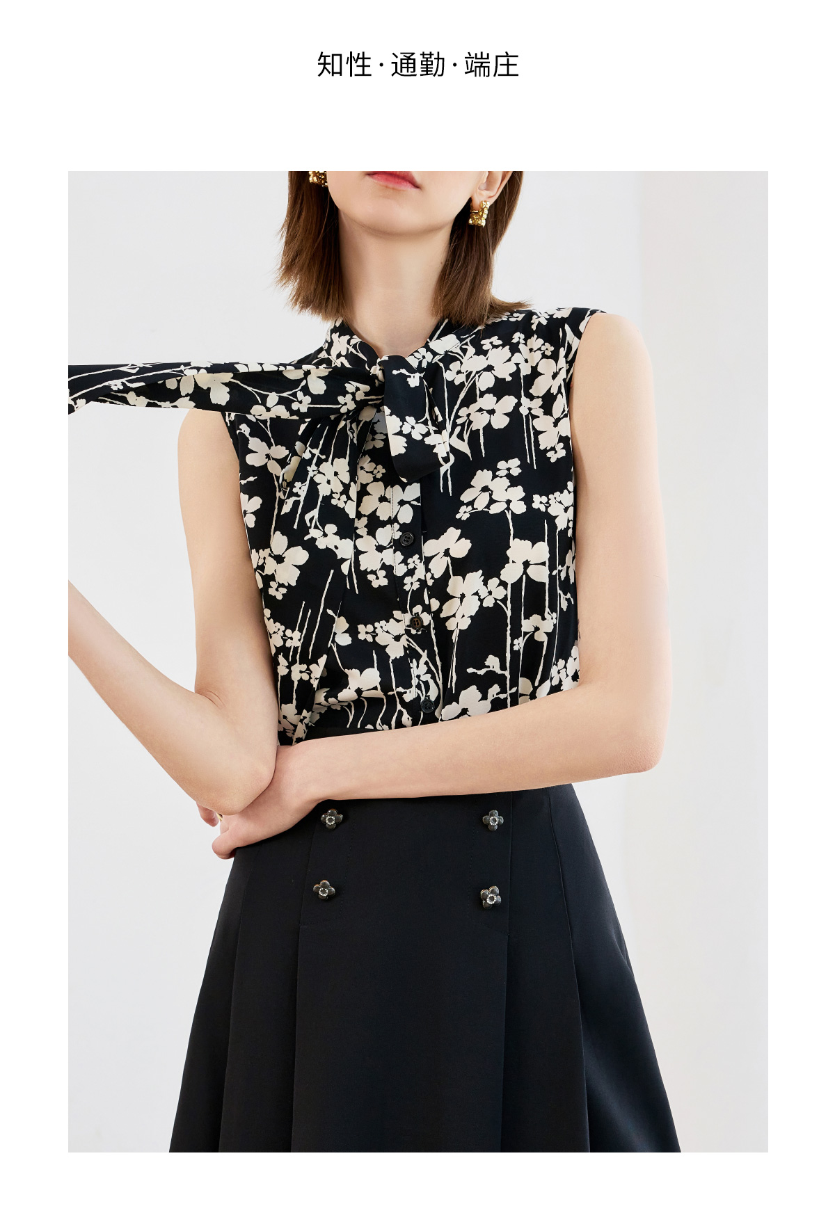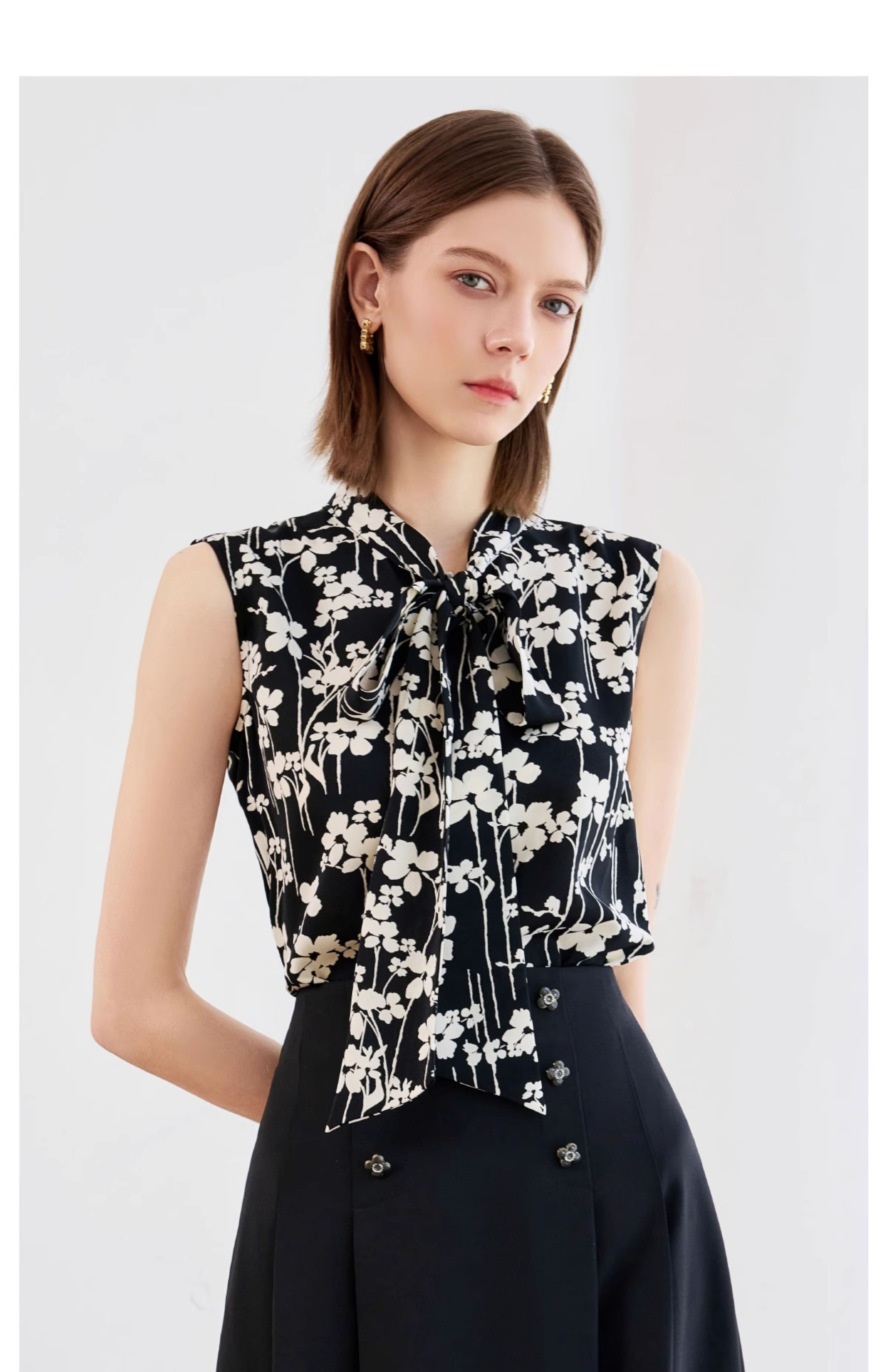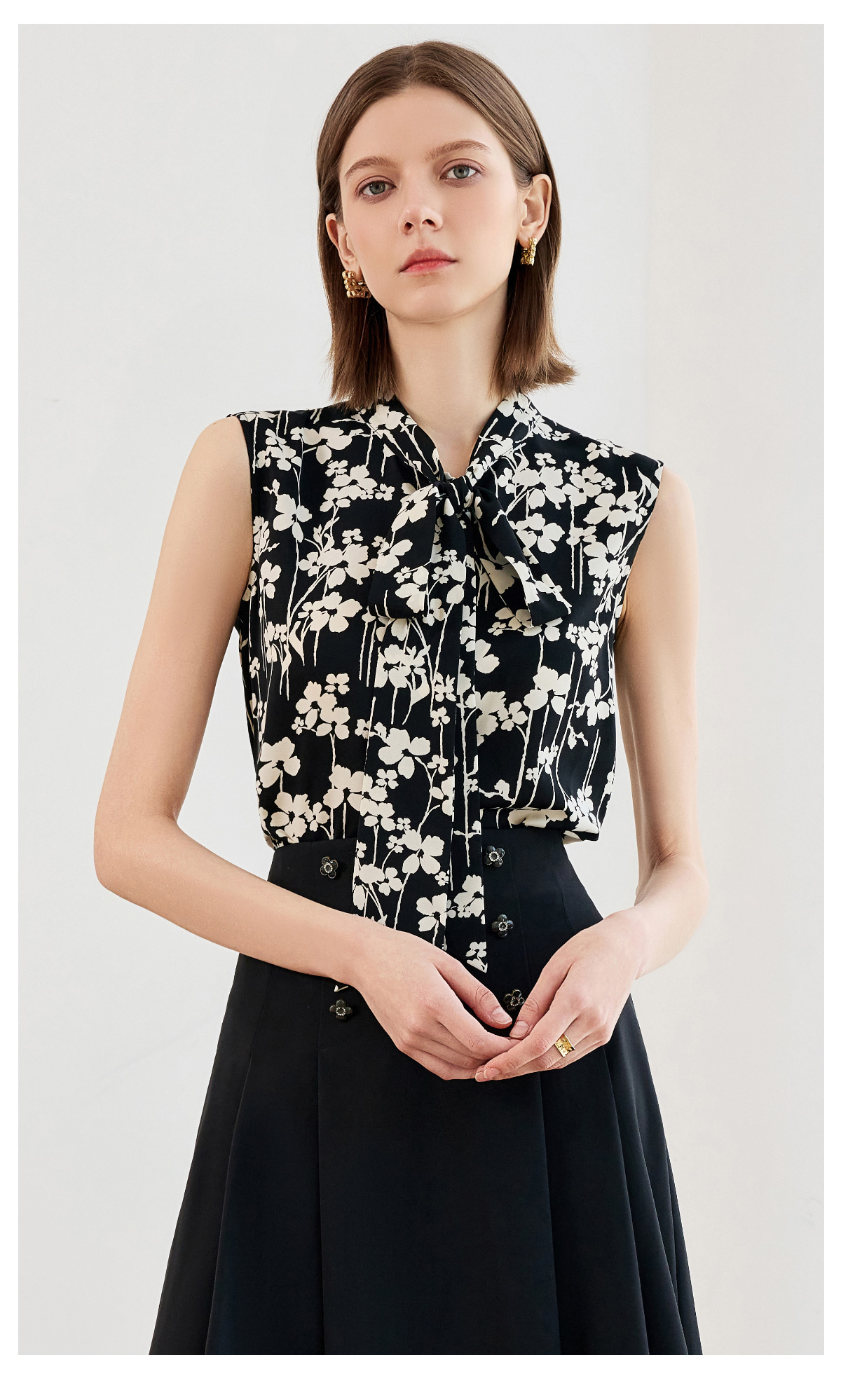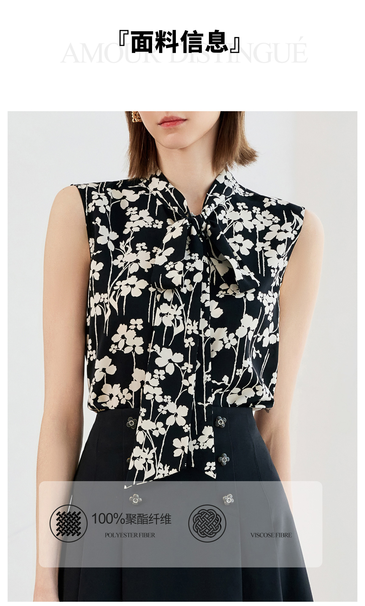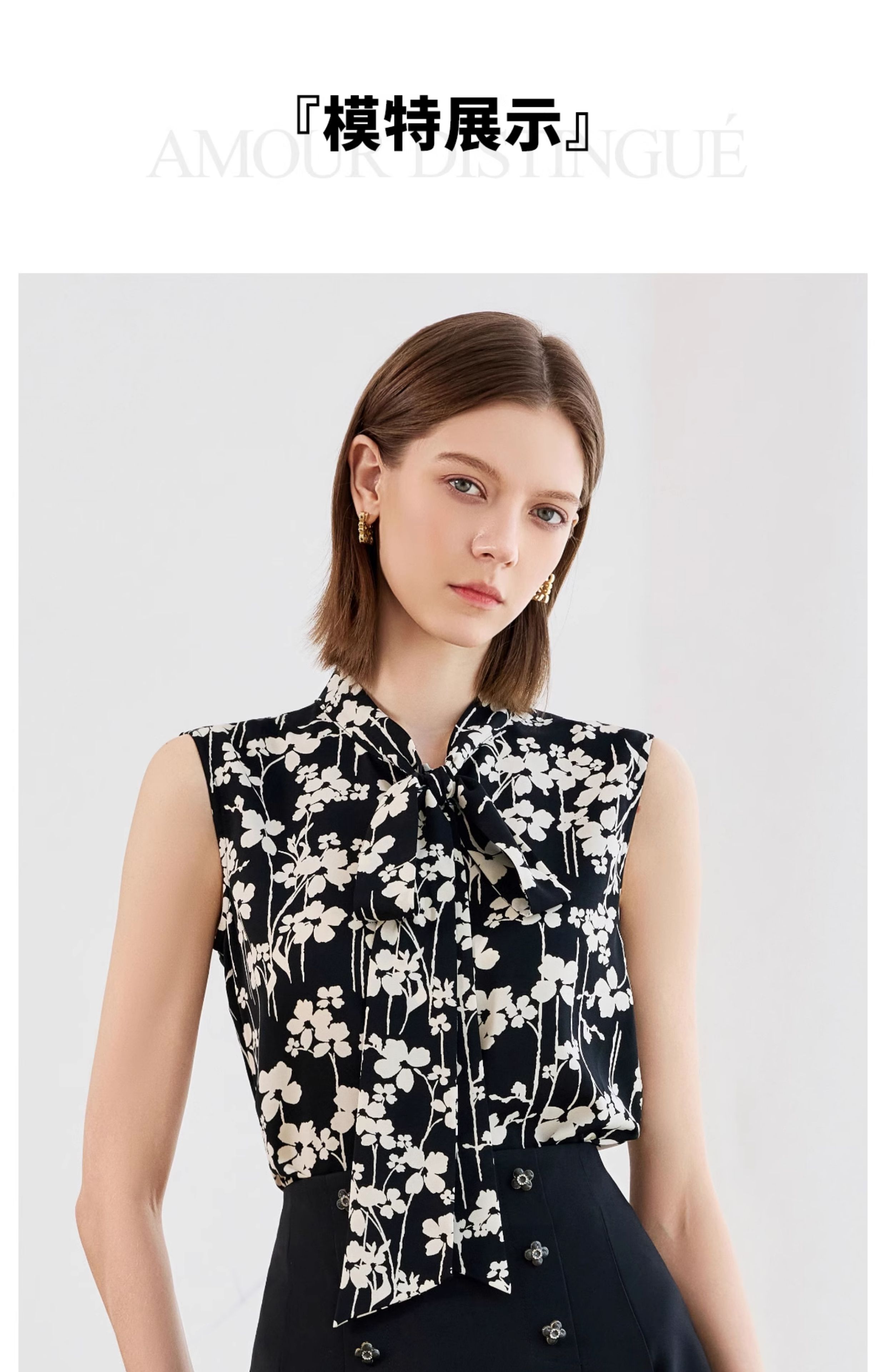 AD气质雪纺衬衣2025夏装新款女装时尚洋气撞色印花无袖套头衬衫