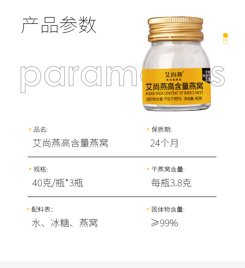 艾尚燕即食燕窝礼盒装40g*6瓶*浓度99%礼盒装 老人孕妇礼品送礼送长辈营养滋补品 商品缩略图0 艾尚燕即食燕窝礼盒装40g*6瓶*浓度99%礼盒装 老人孕妇礼品送礼送长辈营养滋补品 商品缩略图1 艾尚燕即食燕窝礼盒装40g*6瓶*浓度99%礼盒装 老人孕妇礼品送礼送长辈营养滋补品 商品缩略图2 艾尚燕即食燕窝礼盒装40g*6瓶*浓度99%礼盒装 老人孕妇礼品送礼送长辈营养滋补品 商品缩略图3 艾尚燕即食燕窝礼盒装40g*6瓶*浓度99%礼盒装 老人孕妇礼品送礼送长辈营养滋补品 商品缩略图4 艾尚燕即食燕窝礼盒装40g*6瓶*浓度99%礼盒装 老人孕妇礼品送礼送长辈营养滋补品 商品缩略图5