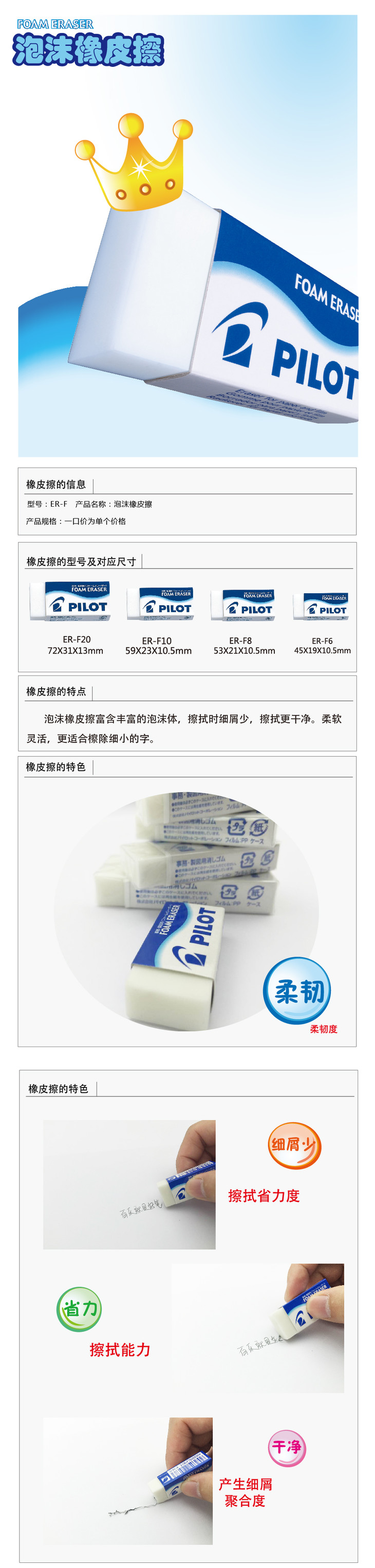 PILOT橡皮擦10块装 | 丰富泡沫体、擦拭更干净、更柔软、细屑少、省力省心、学霸用的橡皮擦