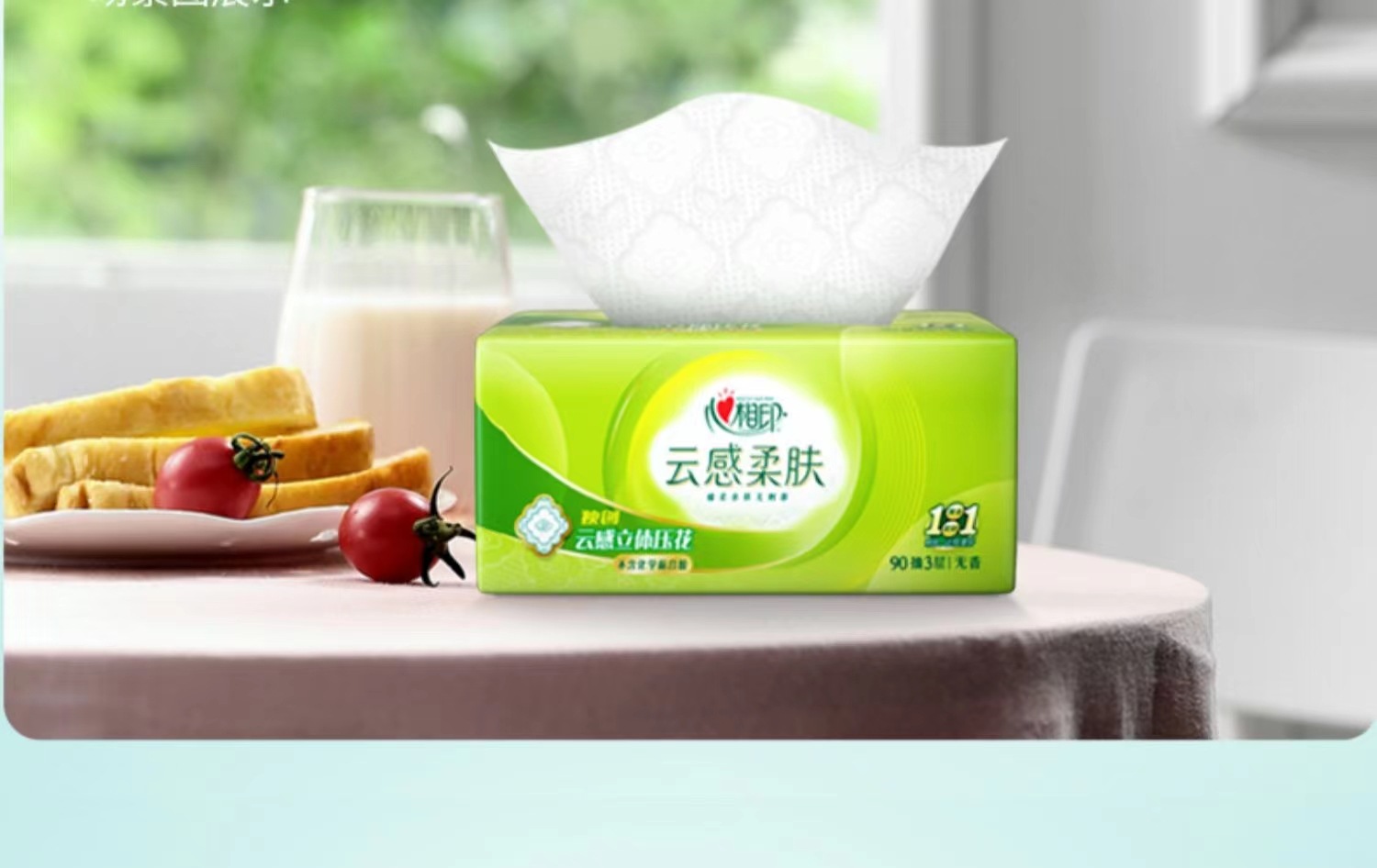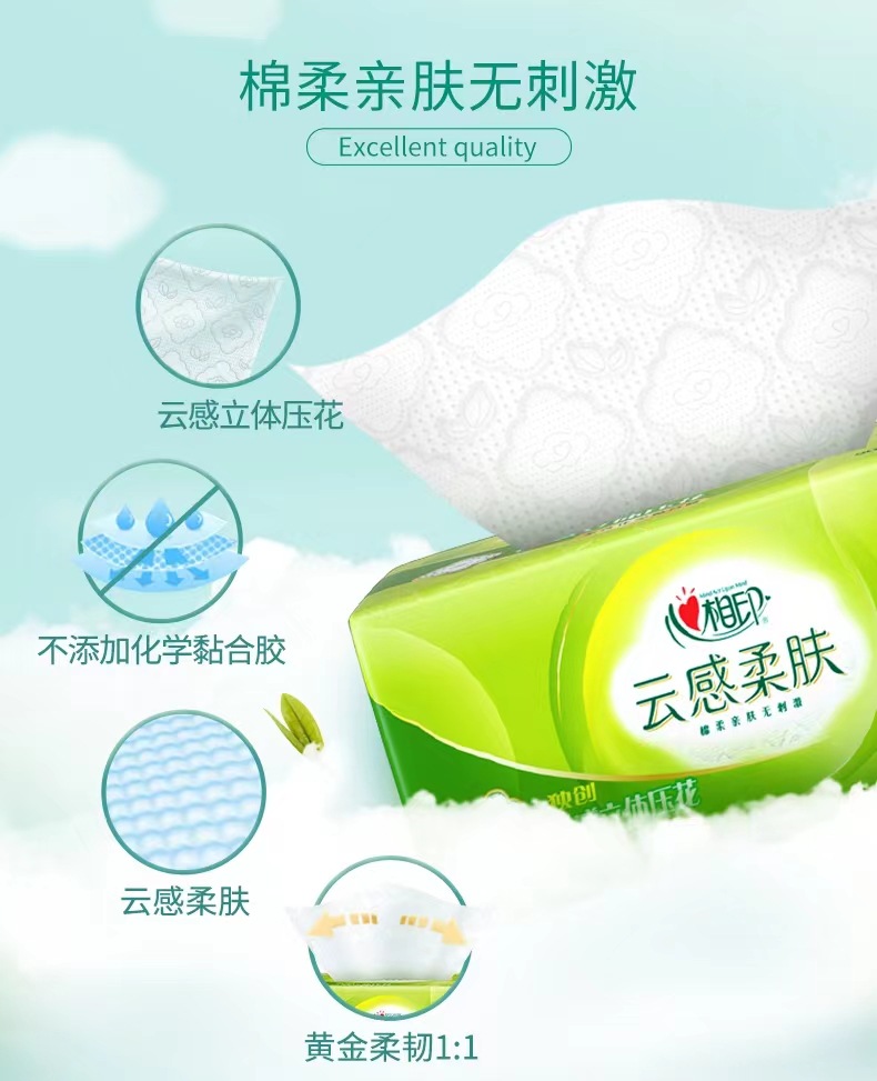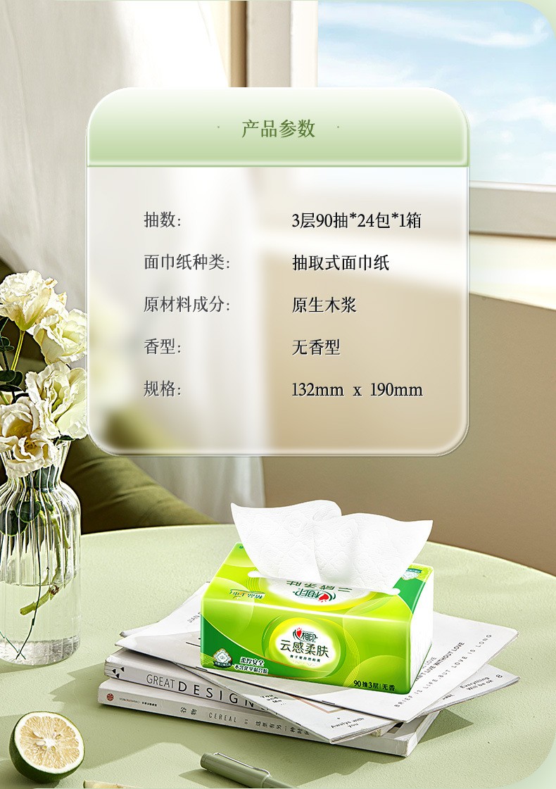 心相印云感柔肤抽纸90抽24包家用实惠装餐巾纸整箱面巾纸餐巾纸