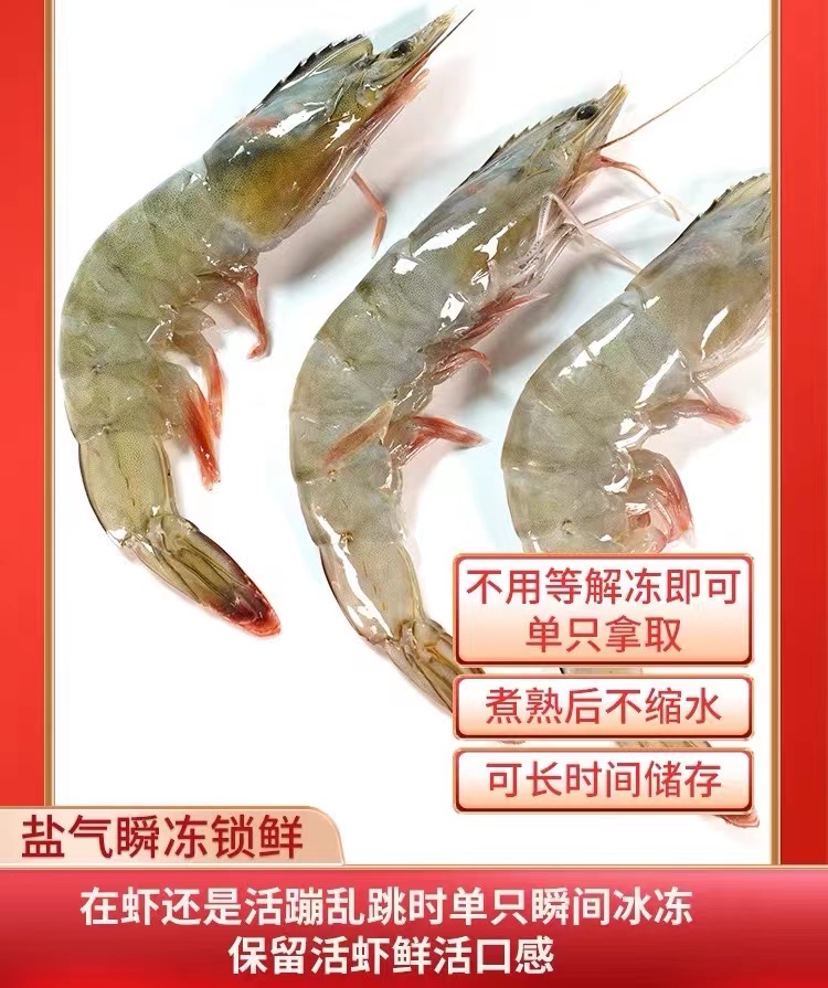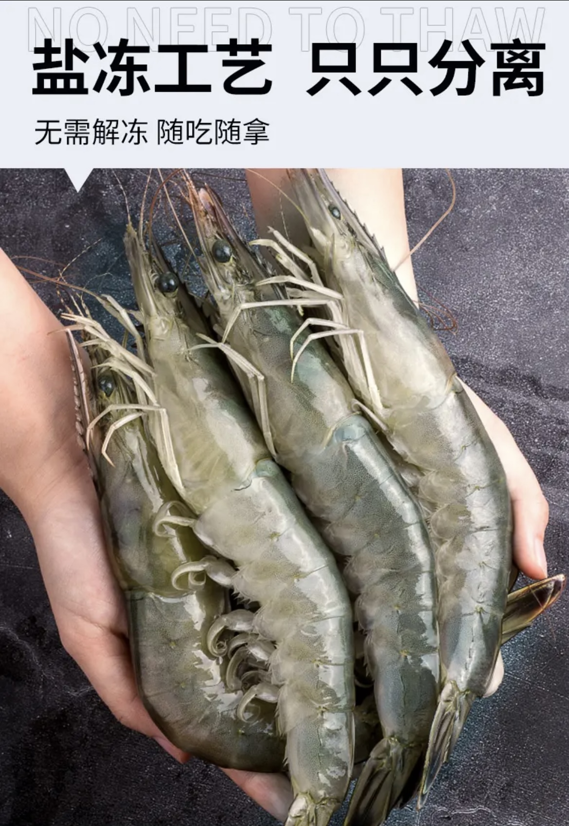 【盐冻】南美厄瓜多尔🇪🇨白大虾南美盐气瞬冻技术,在虾活蹦乱跳时单只瞬间冰冻,保留活虾口感,