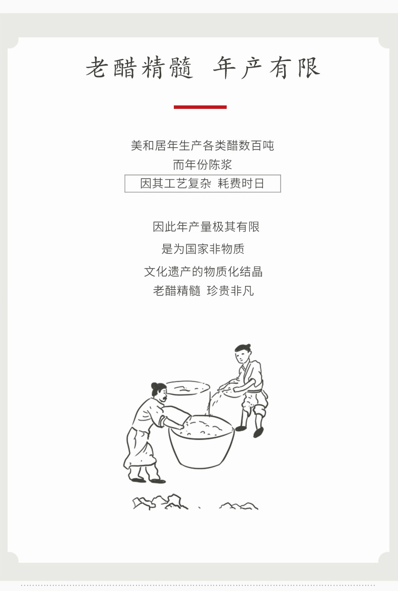 - 美和居始创于1368年,为山西老陈醋开创者,国家级非物质文化遗产酿制技艺,国家地理标志保护产品!