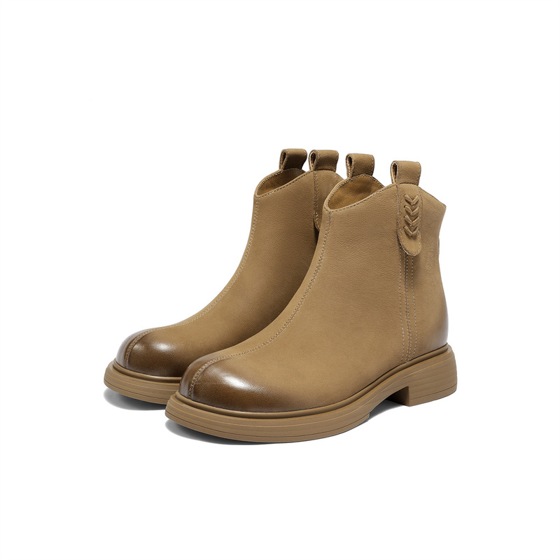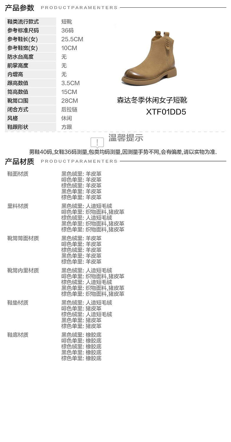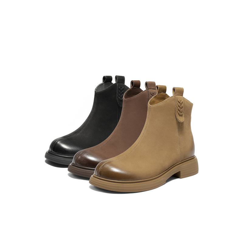 【云粉节】BF楼 森达羊皮休闲靴2025冬季新款小V显瘦复古潮流短靴XTF01吊牌价959活动价499
