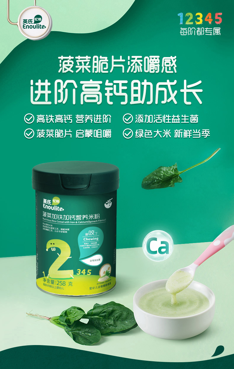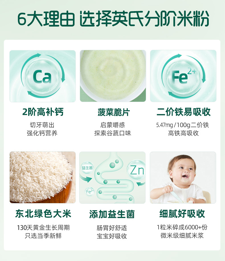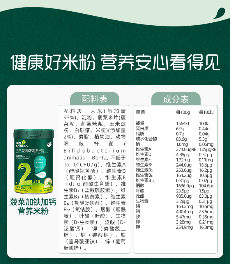 英氏忆格鳕鱼南瓜加锌/菠菜加铁加钙营养米粉258g