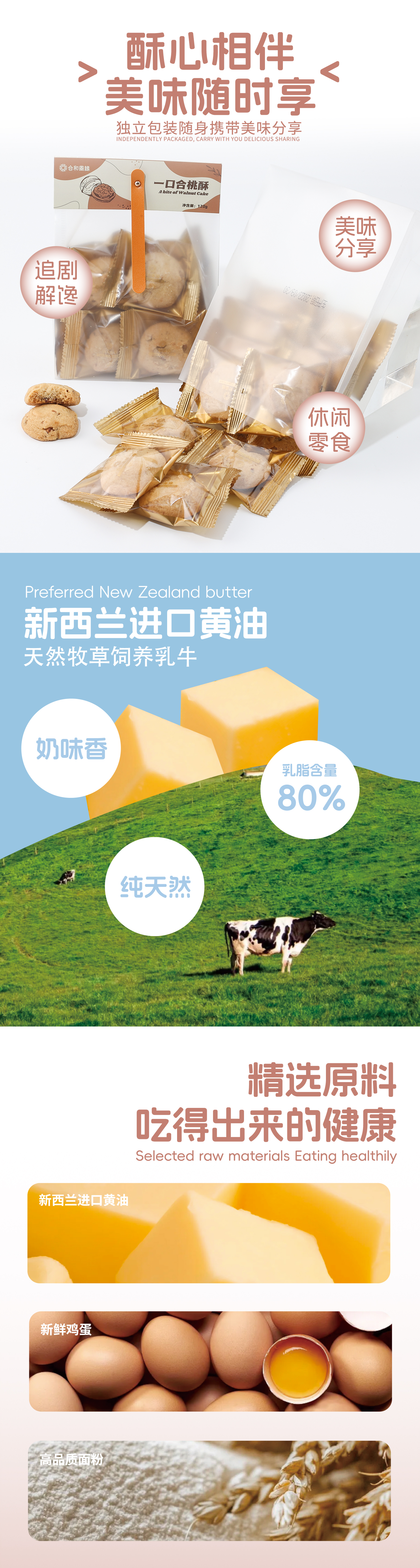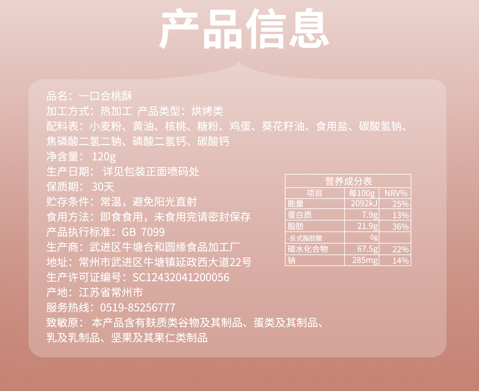 【产品名称】:一口合桃酥(热加工糕点,烘烤类)