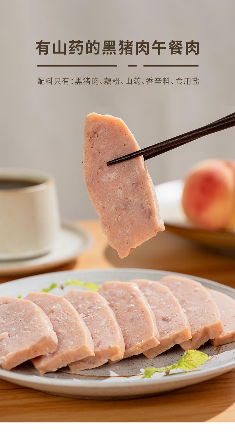 山药藕粉黑猪肉午餐肉| 只选用散养的黑猪前腿肉,特别添加藕粉和山药,不添加防腐剂,口感丰富紧实有嚼劲,老人孩子放心食用,经过高温高压杀菌。250克/袋⭐️顺丰快递