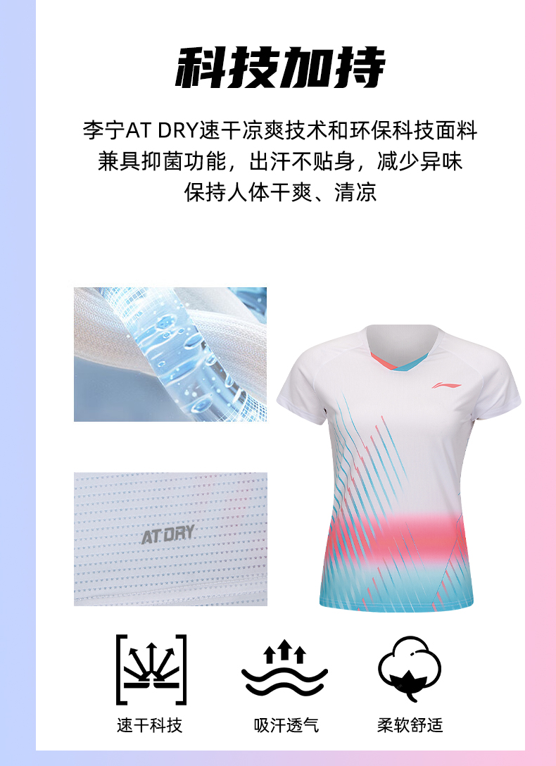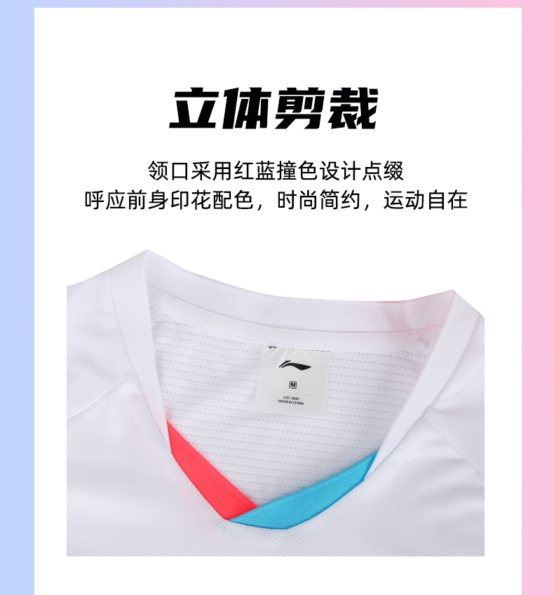 李宁T恤男女比赛服羽毛球系列男女同款速干凉爽比赛上衣AAYU144 AAYU155