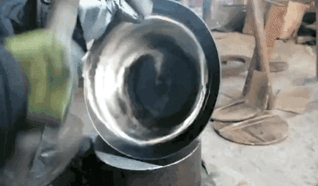师傅说,打铁锅最关键的是打底子和打冷子。